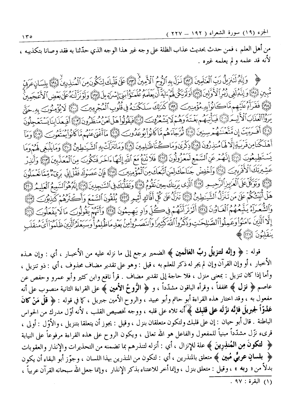 وَإِنَّهُ لَتَنْزِيلُ رَبِّ الْعالَمِينَ (192) نَزَلَ بِهِ الرُّوحُ الْأَمِينُ (193) عَلى قَلْبِكَ لِتَكُونَ مِنَ الْمُنْذِرِينَ (194) بِلِسانٍ عَرَبِيٍّ مُبِينٍ (195) وَإِنَّهُ لَفِي زُبُرِ الْأَوَّلِينَ (196)