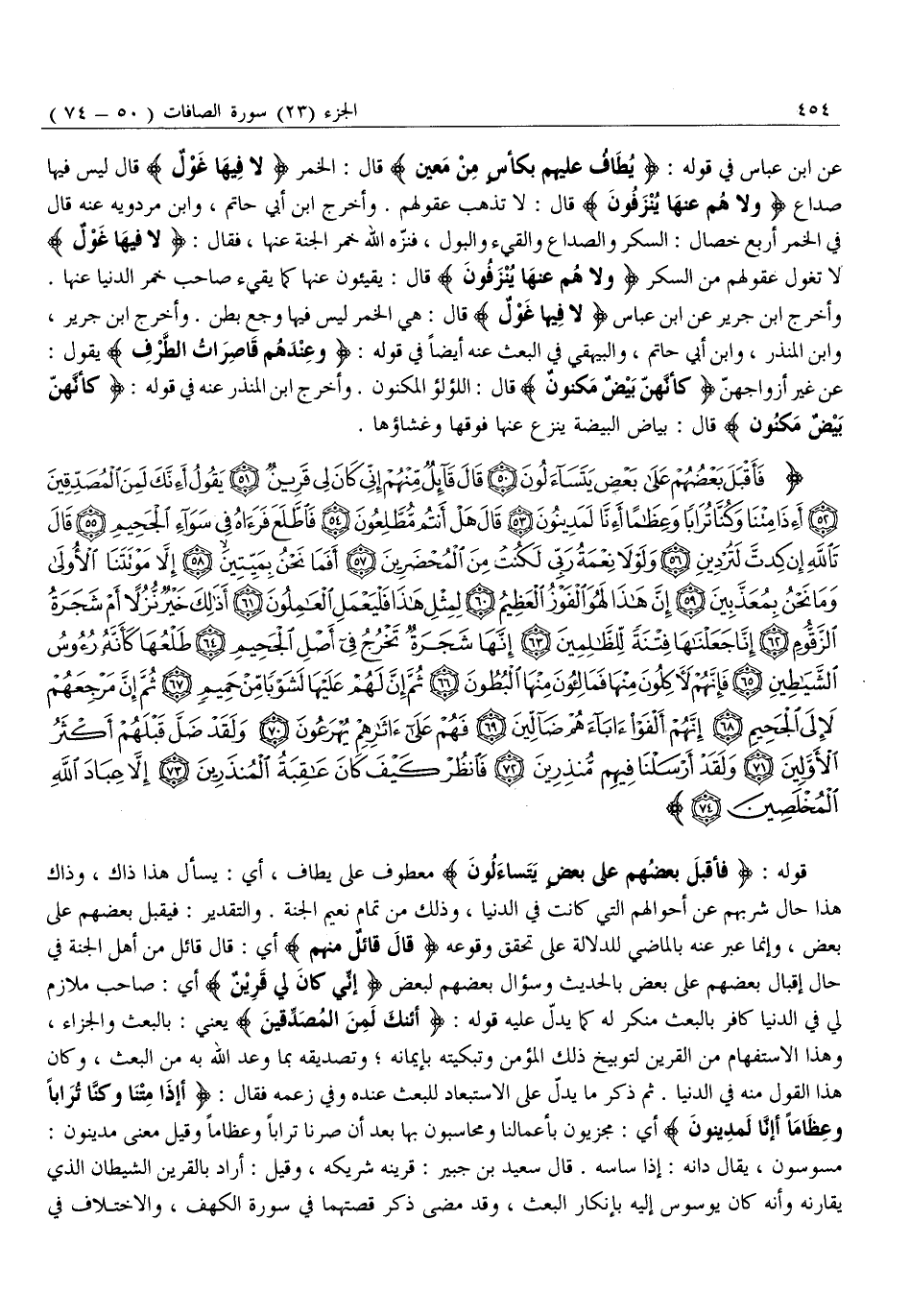 [سورة الصافات (37) : الآيات 50 الى 74]