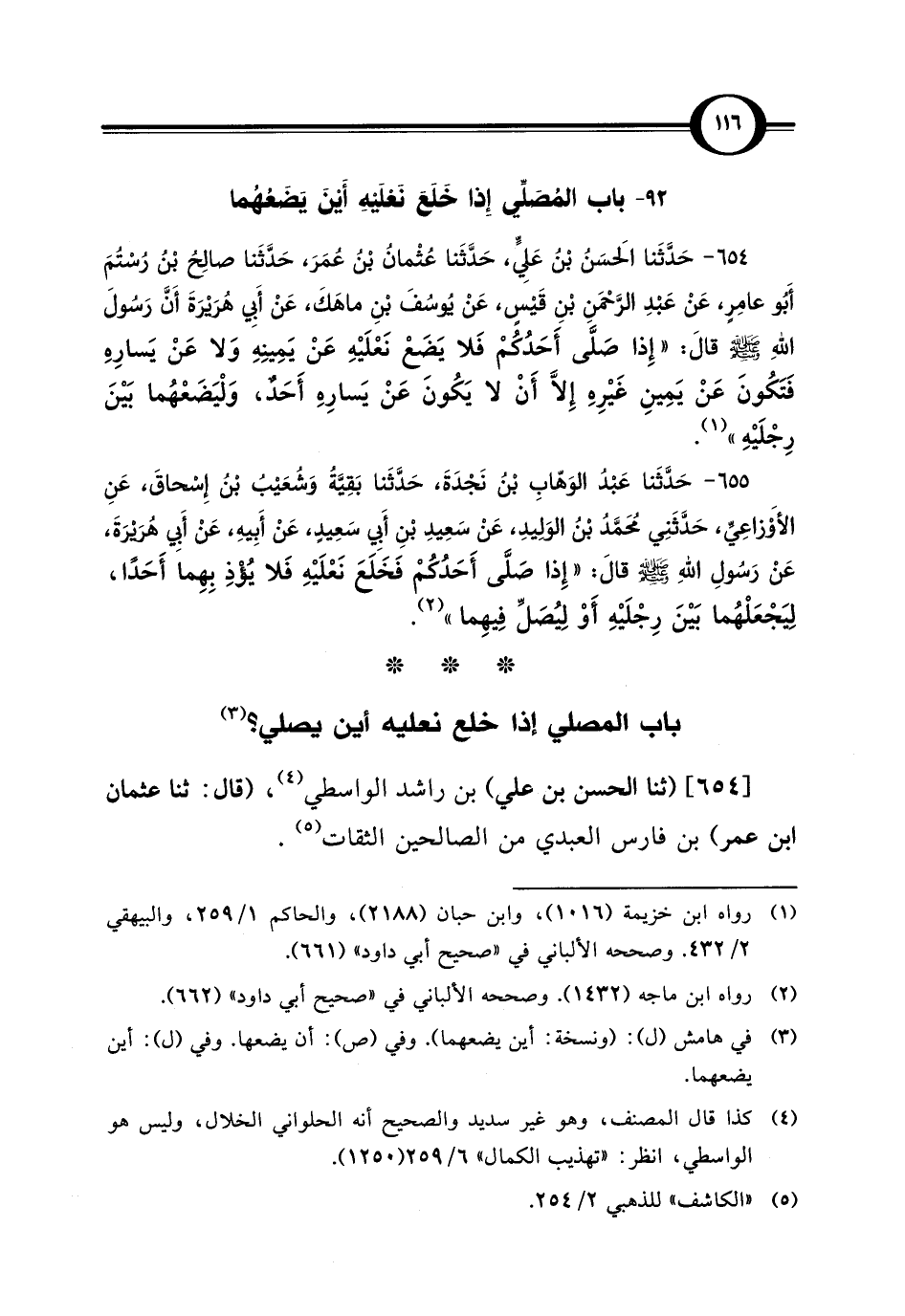 باب المصلي إذا خلع نعليه أين يصلي؟ (¬3)