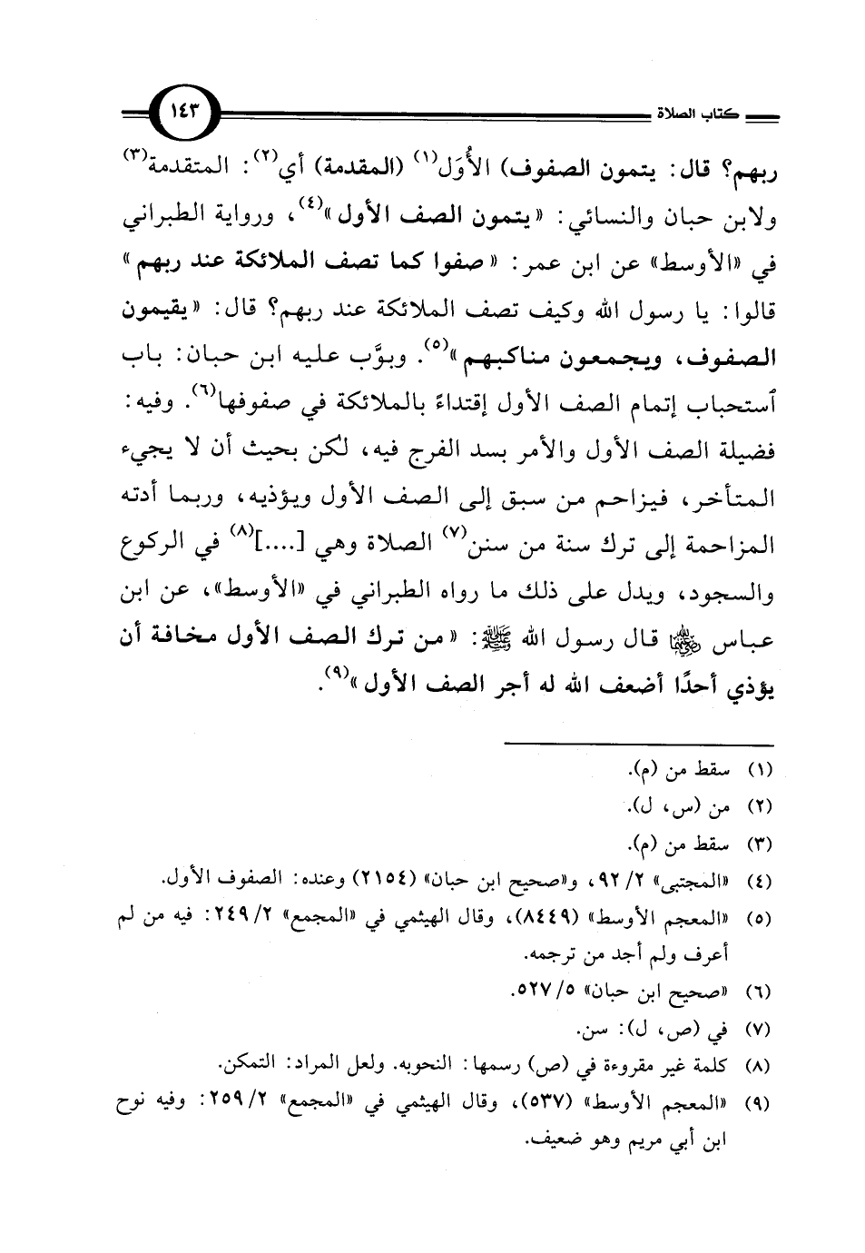 (¬4) "المجتبى" 2/ 92، و"صحيح ابن حبان" (2154) وعنده: الصفوف الأول.