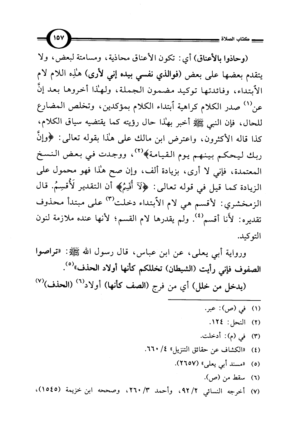 ورواية أبي يعلى، عن ابن عباس، قال رسول الله-صلي الله عليه وسلم-: "تراصوا الصفوف فإني رأيت (الشيطان) تخللكم كأنها أولاد الحذف" (¬5).