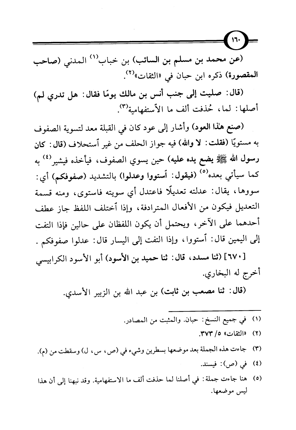 (قال: صليت إلى جنب أنس بن مالك يومًا فقال: هل تدري لم) أصلها: لما، حُذفت ألف ما الاستفهامية (¬3).