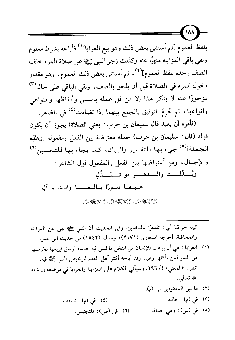 (فأمره أن يعيد قال سليمان بن حرب: يعني الصلاة) يجوز أن يكون قوله (قال: سليمان بن حرب) جملة معترضة بين الفعل ومفعوله [وهذِه الجملة] (¬5) جيء بها للتفسير والبيان، كما يجاء بها للتحسين (¬6) والإجمال، ومن اعتراضها بين الفعل والمفعول قول الشاعر: