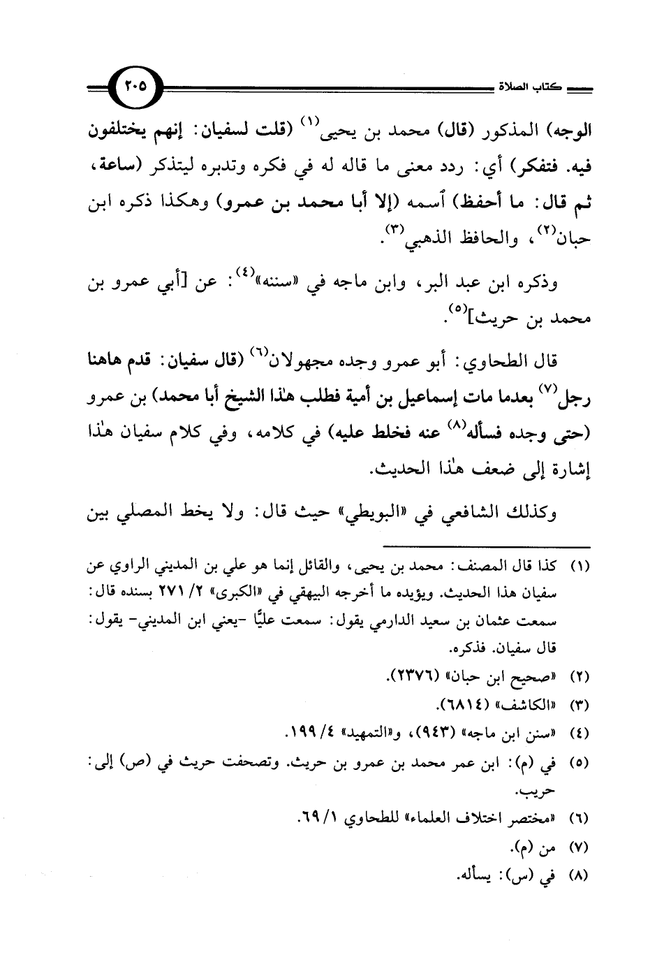 قال الطحاوي: أبو عمرو وجده مجهولان (¬6) (قال سفيان: قدم هاهنا رجل (¬7) بعدما مات إسماعيل بن أمية فطلب هذا الشيخ أبا محمد) بن عمرو (حتى وجده فسأله (¬8) عنه فخلط عليه) في كلامه، وفي كلام سفيان هذا إشارة إلى ضعف هذا الحديث.