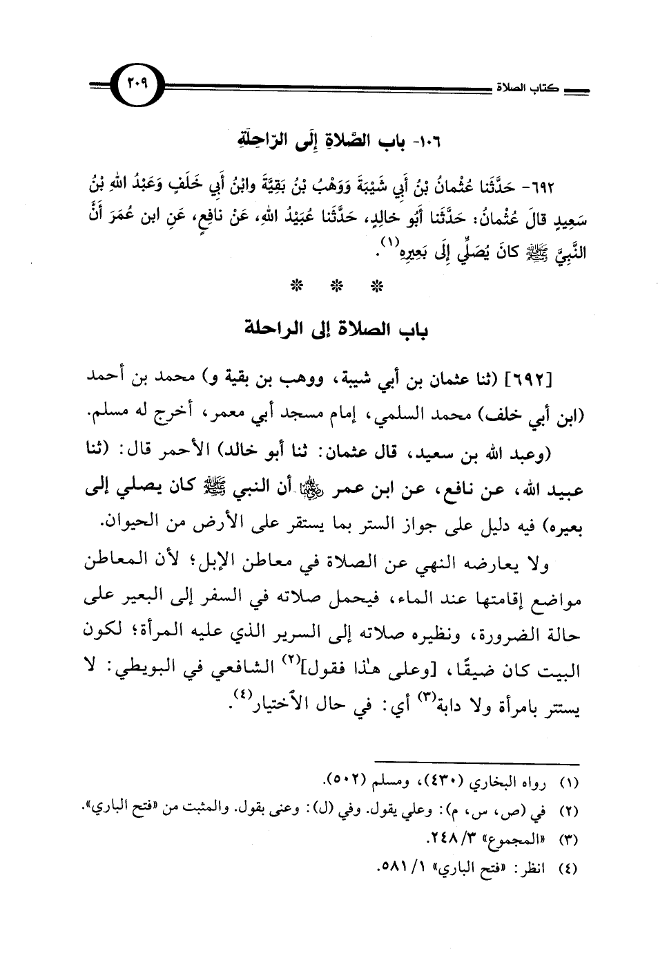 106 - باب الصَّلاة إِلَى الرّاحِلَةِ