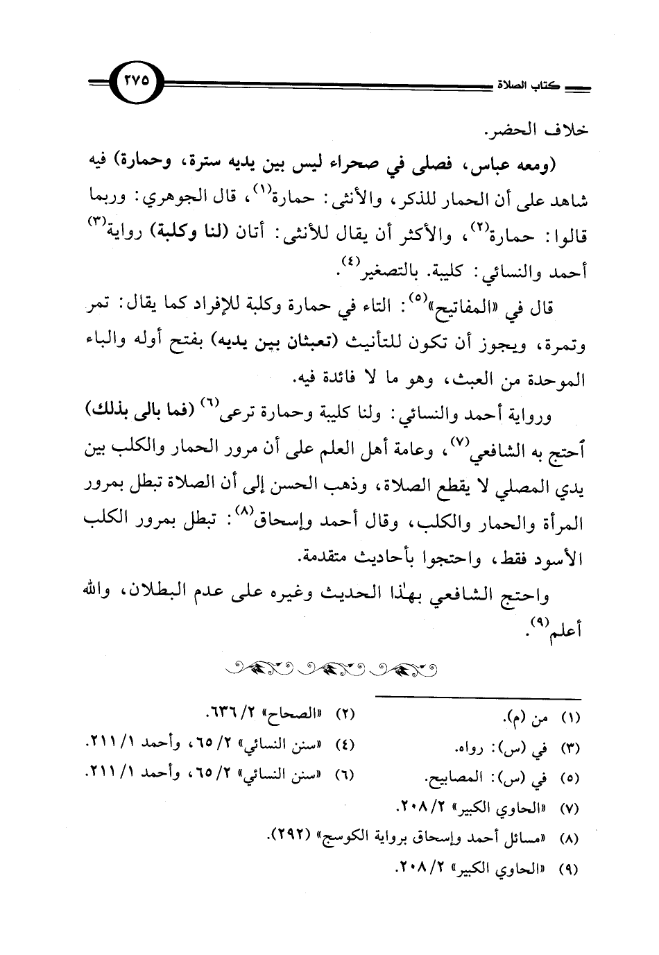 ورواية أحمد والنسائي: ولنا كليبة وحمارة ترعى (¬6) (فما بالى بذلك) احتج به الشافعي (¬7)، وعامة أهل العلم على أن مرور الحمار والكلب بين يدي المصلي لا يقطع الصلاة، وذهب الحسن إلى أن الصلاة تبطل بمرور المرأة والحمار والكلب، وقال أحمد وإسحاق (¬8): تبطل بمرور الكلب الأسود فقط، واحتجوا بأحاديث متقدمة.