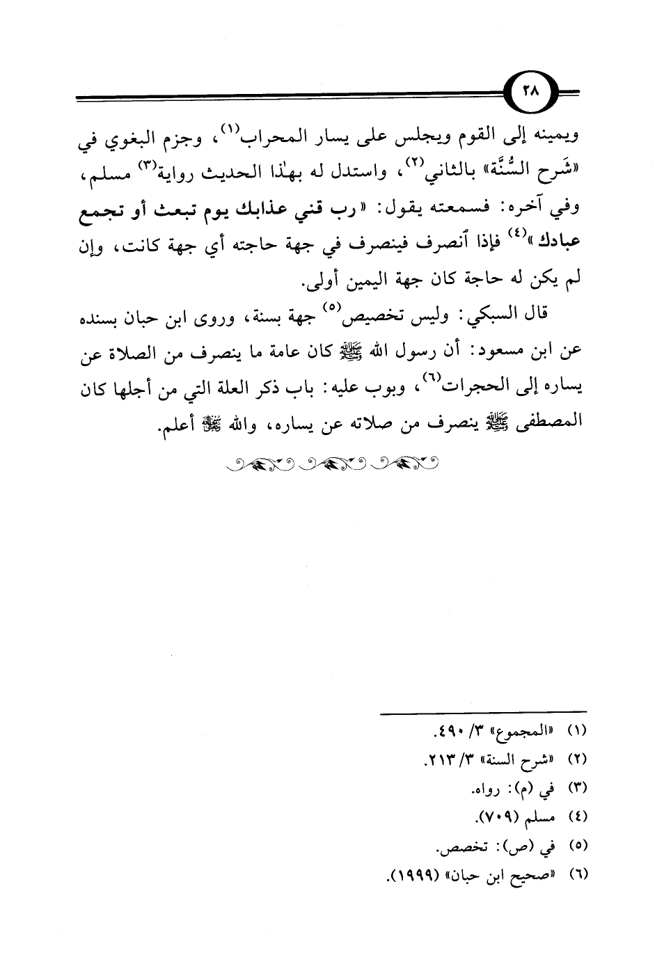 قال السبكي: وليس تخصيص (¬5) جهة بسنة، وروى ابن حبان بسنده عن ابن مسعود: أن رسول الله - صلى الله عليه وسلم - كان عامة ما ينصرف من الصلاة عن يساره إلى الحجرات (¬6)، وبوب عليه: باب ذكر العلة التي من أجلها كان المصطفى - صلى الله عليه وسلم - ينصرف من صلاته عن يساره، والله سبحانه وتعالى أعلم.