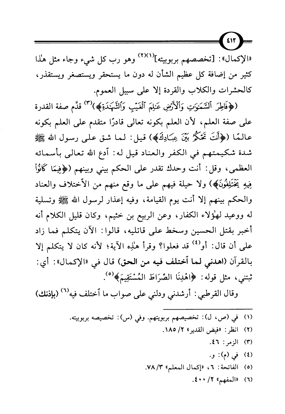 (¬5) الفاتحة: 6، "إكمال المعلم" 3/ 78.