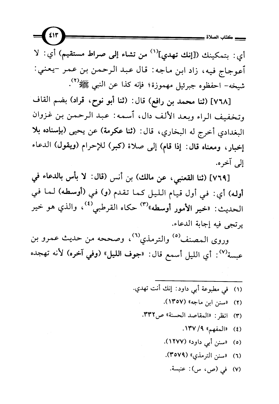 [768] (ثنا محمد بن رافع) قال: (ثنا أبو نوح، قراد) بضم القاف وتخفيف الراء وبعد الألف دال، اسمه: عبد الرحمن بن غزوان البغدادي أخرج له البخاري، قال: (ثنا عكرمة) عن يحيى (بإسناده بلا إخبار، ومعناه قال: إذا قام) إلى صلاة (كبر) للإحرام (ويقول) الدعاء إلى آخره.