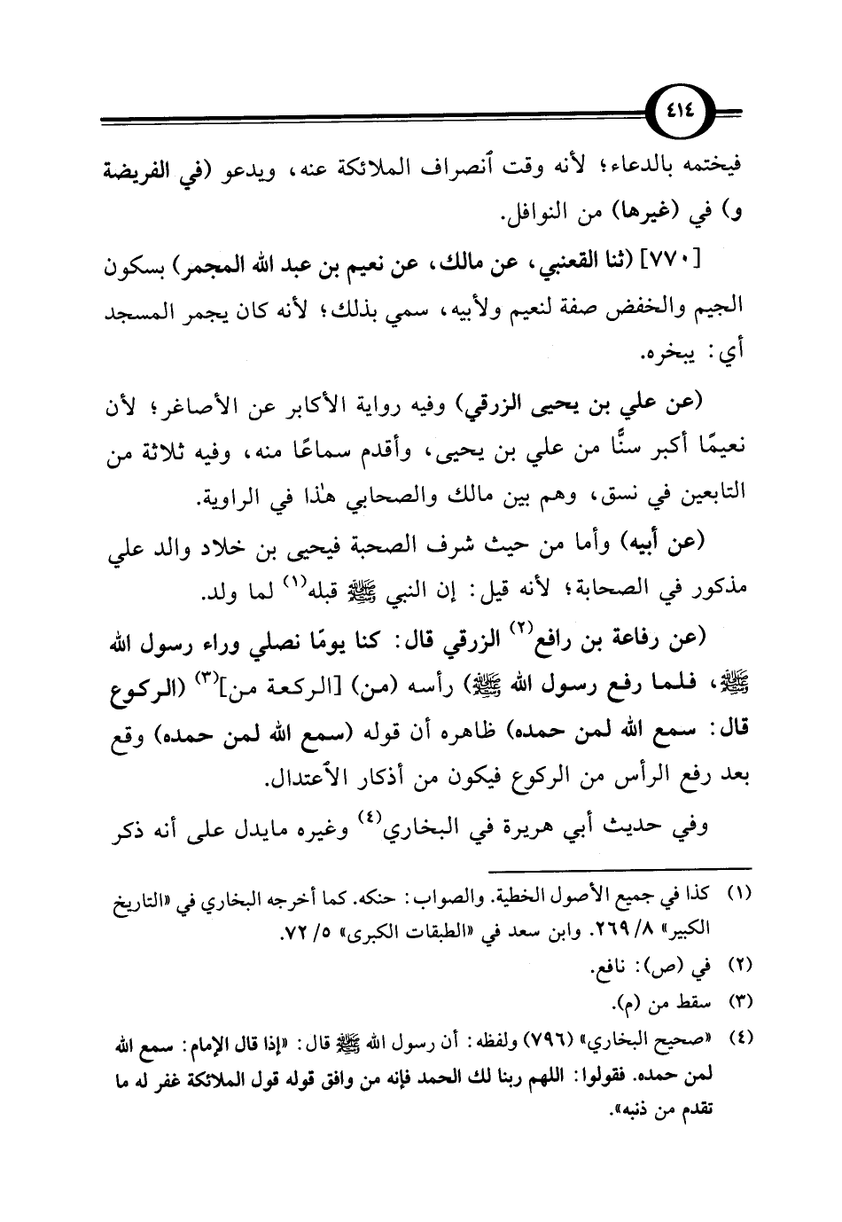 [770] (ثنا القعنبي، عن مالك، عن نعيم بن عبد الله المجمر) بسكون الجيم والخفض صفة لنعيم ولأبيه، سمي بذلك؛ لأنه كان يجمر المسجد أي: يبخره.