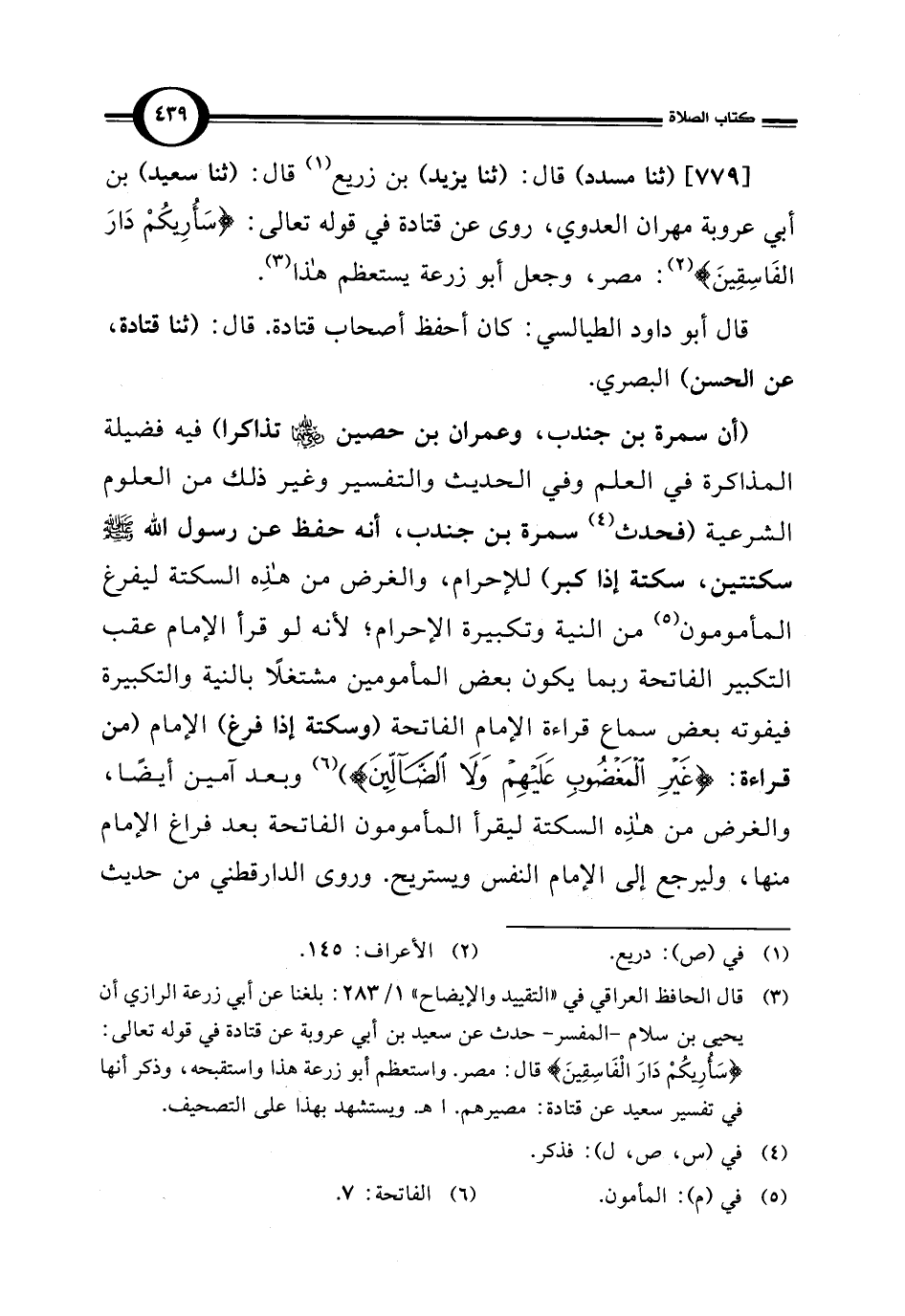 [779] (ثنا مسدد) قال: (ثنا يزيد) بن زريع (¬1) قال: (ثنا سعيد) بن أبي عروبة مهران العدوي، روى عن قتادة في قوله تعالى: {سَأُرِيكُمْ دَارَ الْفَاسِقِينَ} (¬2): مصر، وجعل أبو زرعة يستعظم هذا (¬3).