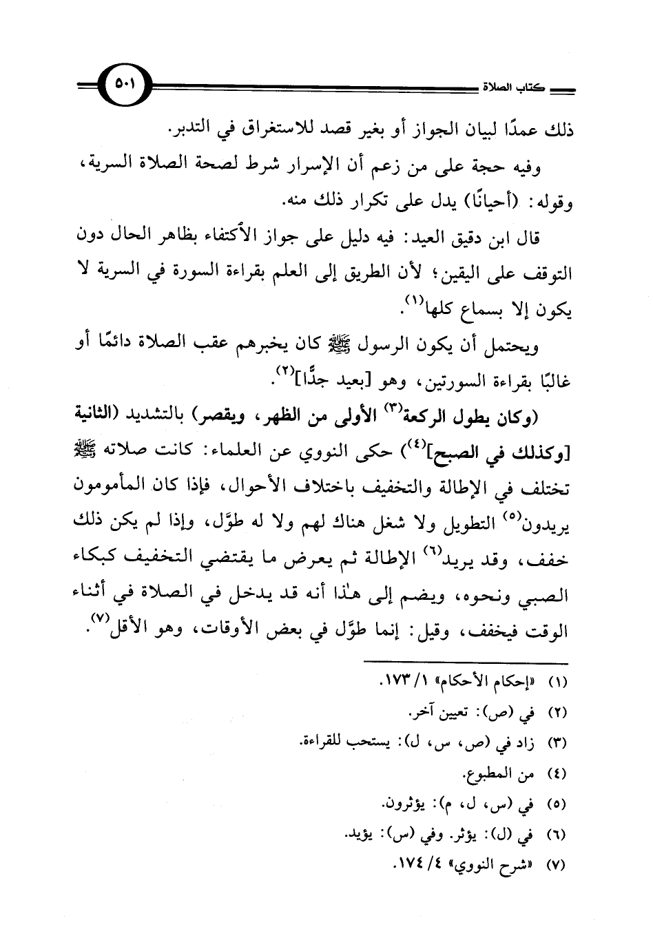(وكان يطول الركعة (¬3) الأولى من الظهر، ويقصر) بالتشديد (الثانية [وكذلك في الصبح]) (¬4) حكى النووي عن العلماء: كانت صلاته - صلى الله عليه وسلم - تختلف في الإطالة والتخفيف باختلاف الأحوال، فإذا كان المأمومون يريدون (¬5) التطويل ولا شغل هناك لهم ولا له طوَّل، وإذا لم يكن ذلك خفف، وقد يريد (¬6) الإطالة ثم يعرض ما يقتضي التخفيف كبكاء الصبي ونحوه، ويضم إلى هذا أنه قد يدخل في الصلاة في أثناء الوقت فيخفف، وقيل: إنما طوَّل في بعض الأوقات، وهو الأقل (¬7).
