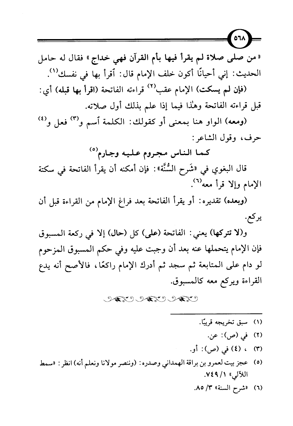 قال البغوي في "شَرح السُّنَّة": فإن أمكنه أن يقرأ الفاتحة في سكتة الإمام" وإلا قرأ معه (¬6).