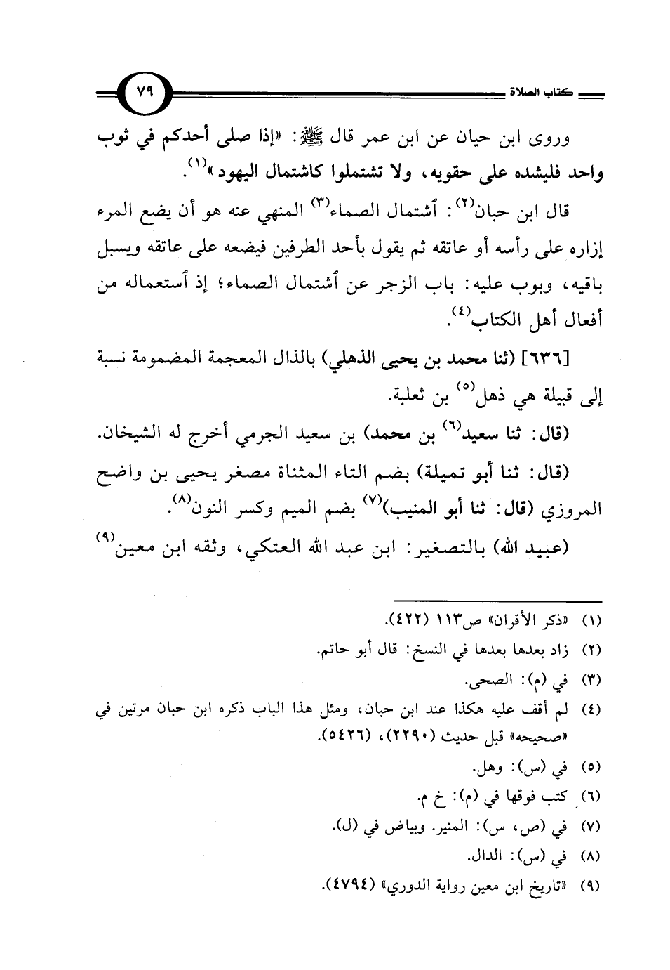 وروى ابن حيان عن ابن عمر قال - صلى الله عليه وسلم -: "إذا صلى أحدكم في ثوب واحد فليشده على حقويه، ولا تشتملوا كاشتمال اليهود" (¬1).
