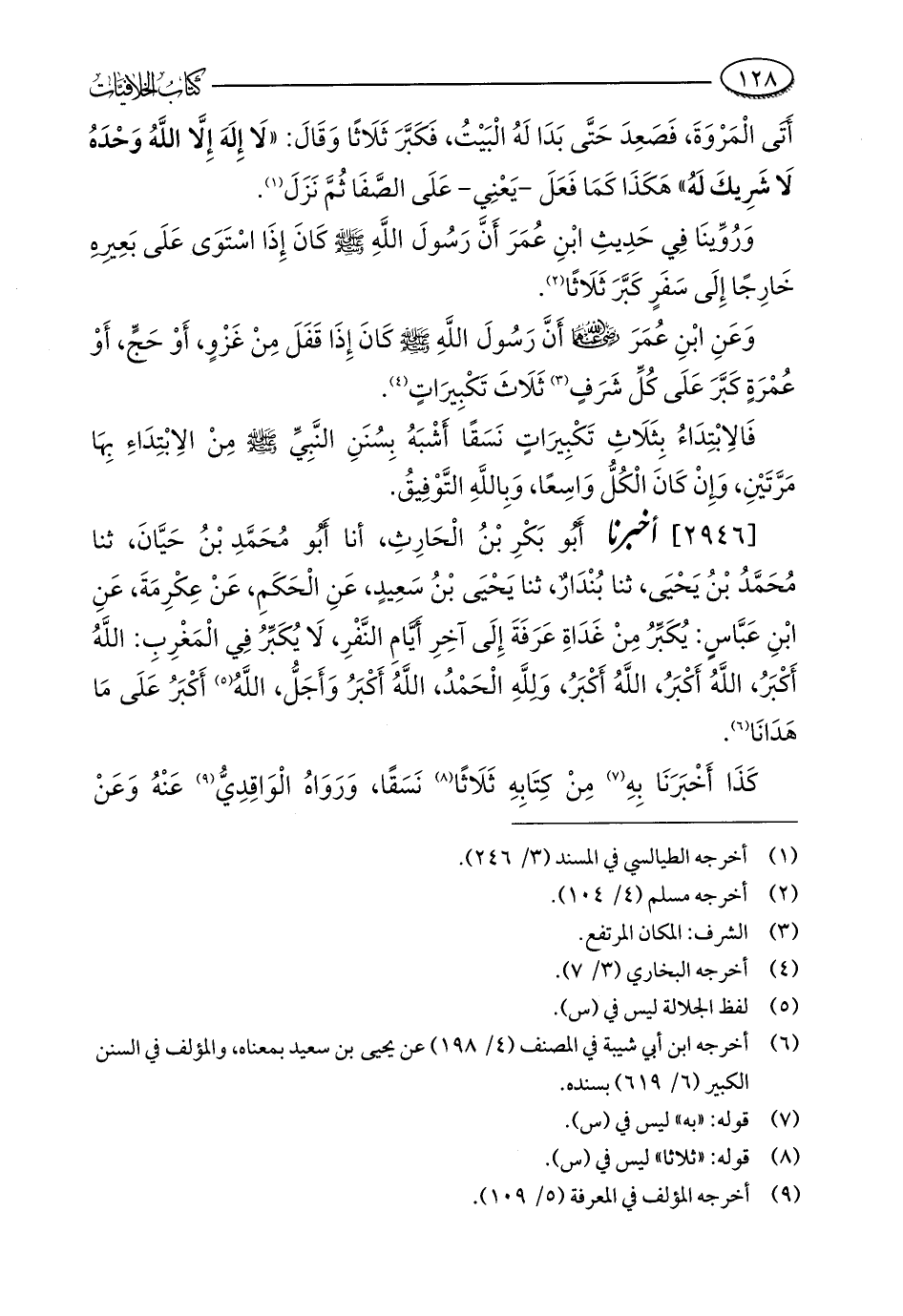 [2946] أخبرنا أَبُو بَكْرِ بْنُ الْحَارِثِ، أنا أَبو مُحَمَّدِ بْنُ حَيَّانَ، ثنا مُحَمَّدُ بْنُ يَحْيَى، ثنا بُنْدَارٌ، ثنا يَحْيَى بْنُ سَعِيدٍ، عَنِ الْحَكَمِ، عَنْ عِكْرِمَةَ، عَنِ ابْنِ عَبَّاسٍ: يُكَبِّرُ مِنْ غَدَاةِ عَرَفَةَ إِلَى آخِرِ أَيَّامِ النَّفْرِ، لَا يُكَبِّرُ فِي الْمَغْرِبِ: اللَّهُ أَكْبَرُ، اللَّهُ أَكْبَرُ، اللَّهُ أَكْبَرُ، وَلِلَّهِ الْحَمْدُ، اللَّهُ أَكْبَرُ وَأَجَلُّ، اللَّهُ (¬5) أَكْبَرُ عَلَى مَا هَدَانَا (¬6).