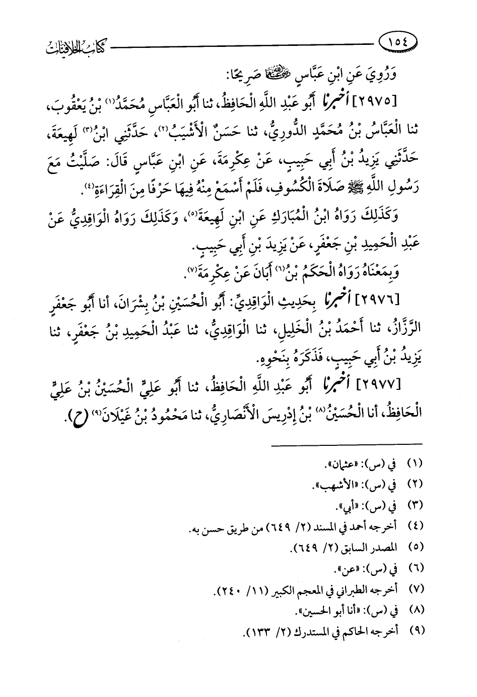[2976] أخبرنا بِحَدِيثِ الْوَاقِدِيِّ: أَبُو الْحُسَيْنِ بْنُ بِشْرَانَ، أنا أَبُو جَعْفَرٍ الرَّزَّازُ، ثنا أَحْمَدُ بْنُ الْخَلِيلِ، ثنا الْوَاقِدِيُّ، ثنا عَبْدُ الْحَمِيدِ بْنُ جَعْفَرٍ، ثنا يَزِيدُ بْنُ أَبِي حَبِيبٍ، فَذَكَرَهُ بِنَحْوِهِ.