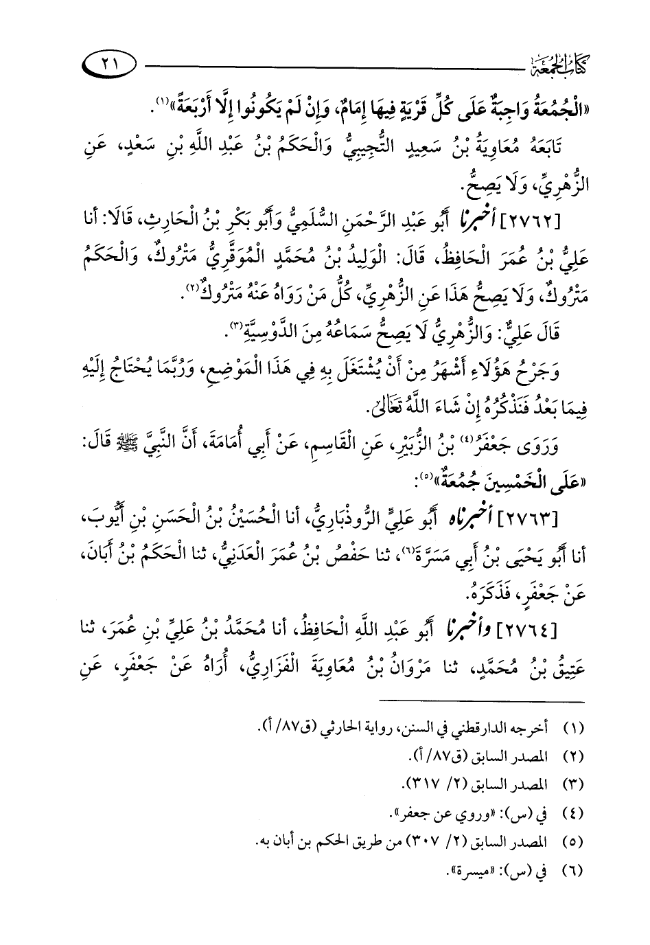 [2762] أخبرنا أَبُو عَبْدِ الرَّحْمَنِ السُّلَمِيُّ وَأَبُو بَكْرِ بْنُ الْحَارِثِ، قَالَا: أنا عَلِيُّ بْنُ عُمَرَ الْحَافِظُ، قَالَ: الْوَلِيدُ بْنُ مُحَمَّدٍ الْمُوَقَّرِيُّ مَتْرُوكٌ، وَالْحَكَمُ مَتْرُوكٌ، وَلَا يَصِحُّ هَذَا عَنِ الزُّهْرِيِّ، كُلُّ مَنْ رَوَاهُ عَنْهُ مَتْرُوكٌ (¬2).