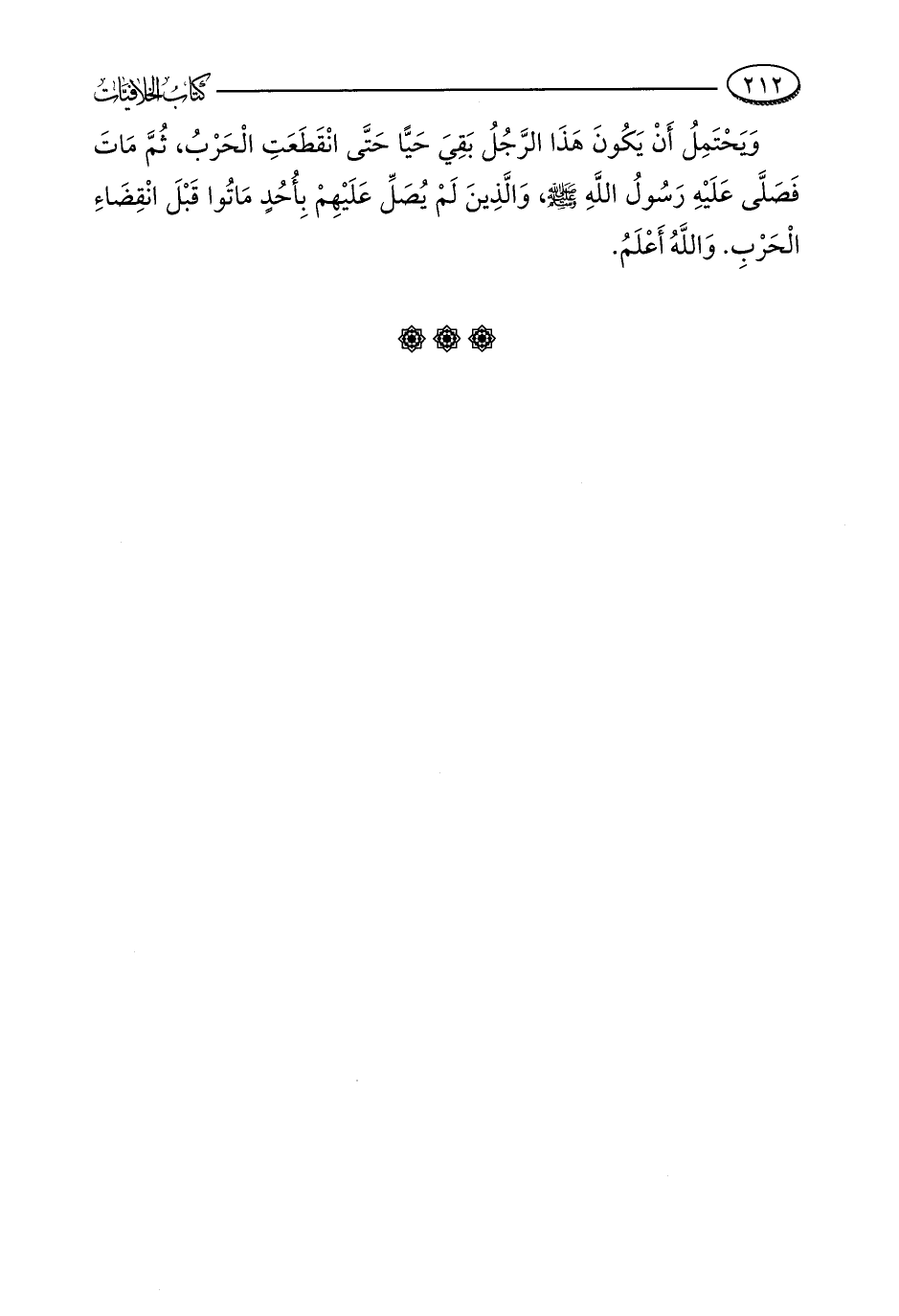 وَيَحْتَمِلُ أَنْ يَكُونَ هَذَا الرَّجُلُ بَقِيَ حَيًّا حَتَّى انْقَطَعَتِ الْحَرْبُ، ثُمَّ مَاتَ فَصَلَّى عَلَيْهِ رَسُولُ اللَّهِ - صلى الله عليه وسلم -، وَالَّذِينَ لَمْ يُصَلِّ عَلَيْهِمْ بِأُحُدٍ مَاتُوا قَبْلَ انْقِضَاءِ الْحَرْبِ. وَاللَّهُ أَعْلَمُ.
