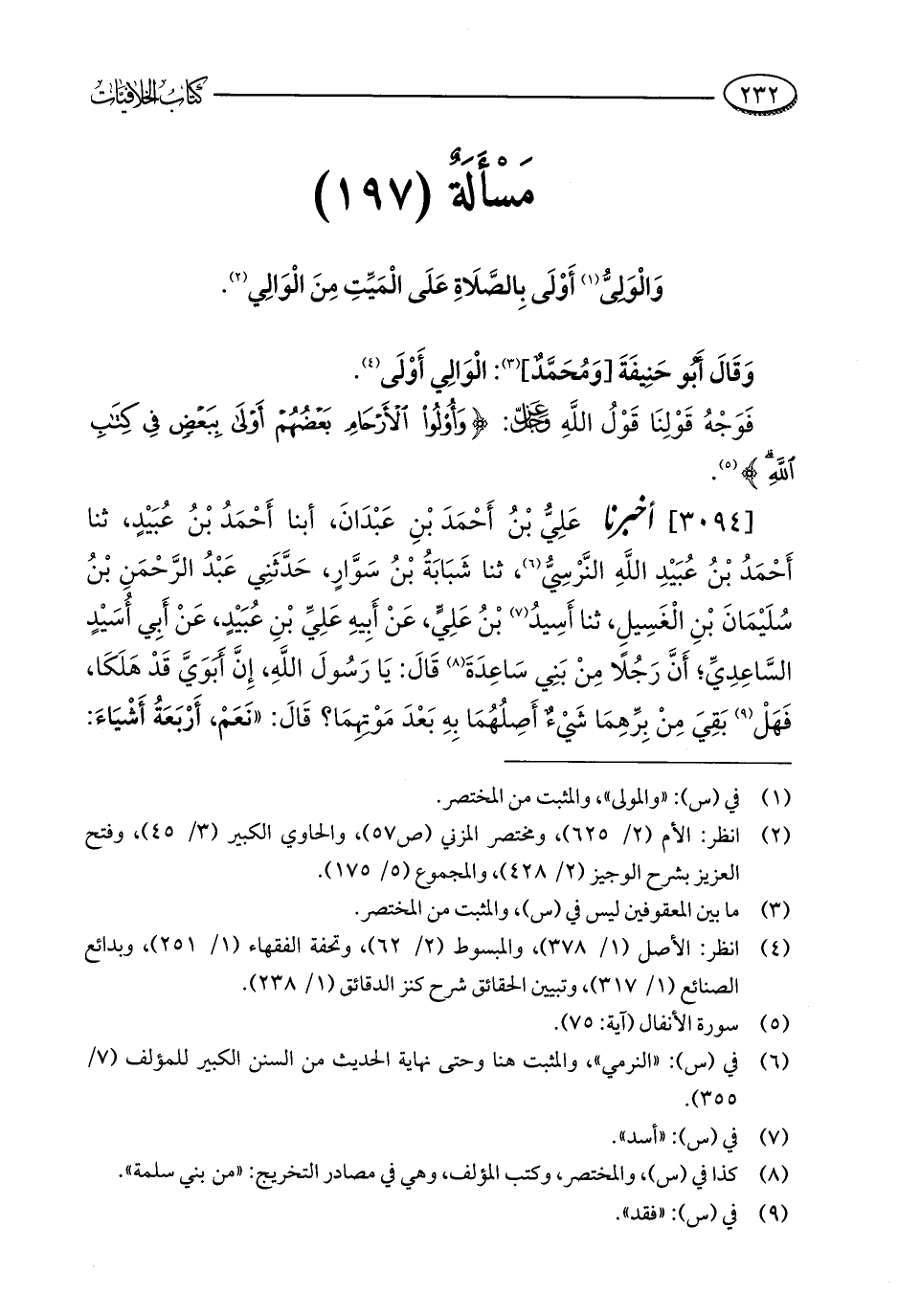 كتاب الخلافيات بين الإمامين الشافعي وأبي حنيفة وأصحابه ت النحال (اسم الجزء: 4)