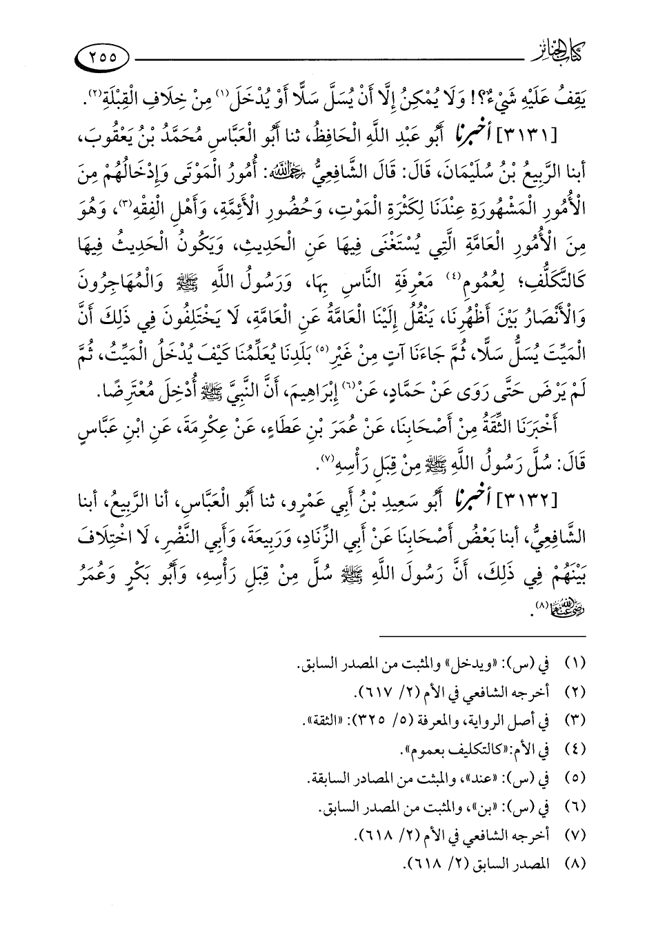 [3132] أخبرنا أَبُو سَعِيدِ بْنُ أَبِي عَمْرٍو، ثنا أَبُو الْعَبَّاسِ، أنا الرَّبِيعُ، أبنا الشَّافِعِيُّ، أبنا بَعْضُ أَصْحَابِنَا عَنْ أَبِي الزِّنَادِ، وَرَبِيعَةَ، وَأَبِي النَّضْرِ، لَا اخْتِلَافَ بَيْنَهُمْ فِي ذَلِكَ، أَنَّ رَسُولَ اللَّهِ - صلى الله عليه وسلم - سُلَّ مِنْ قِبَلِ رَأْسِهِ، وَأَبُو بَكْرٍ وَعُمَرُ - رضي الله عنهما - (¬8).