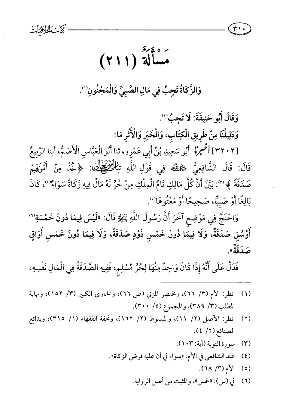 مَسْأَلَةٌ (211): وَالزَّكَاةُ تَجِبُ فِي مَالِ الصَّبِيِّ وَالْمَجْنُونِ (¬1).