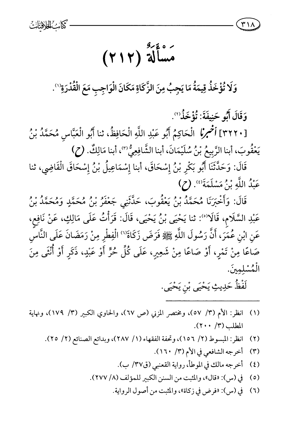 (¬6) في (س): "فرض في زكاة"، والمثبت من أصول الرواية.