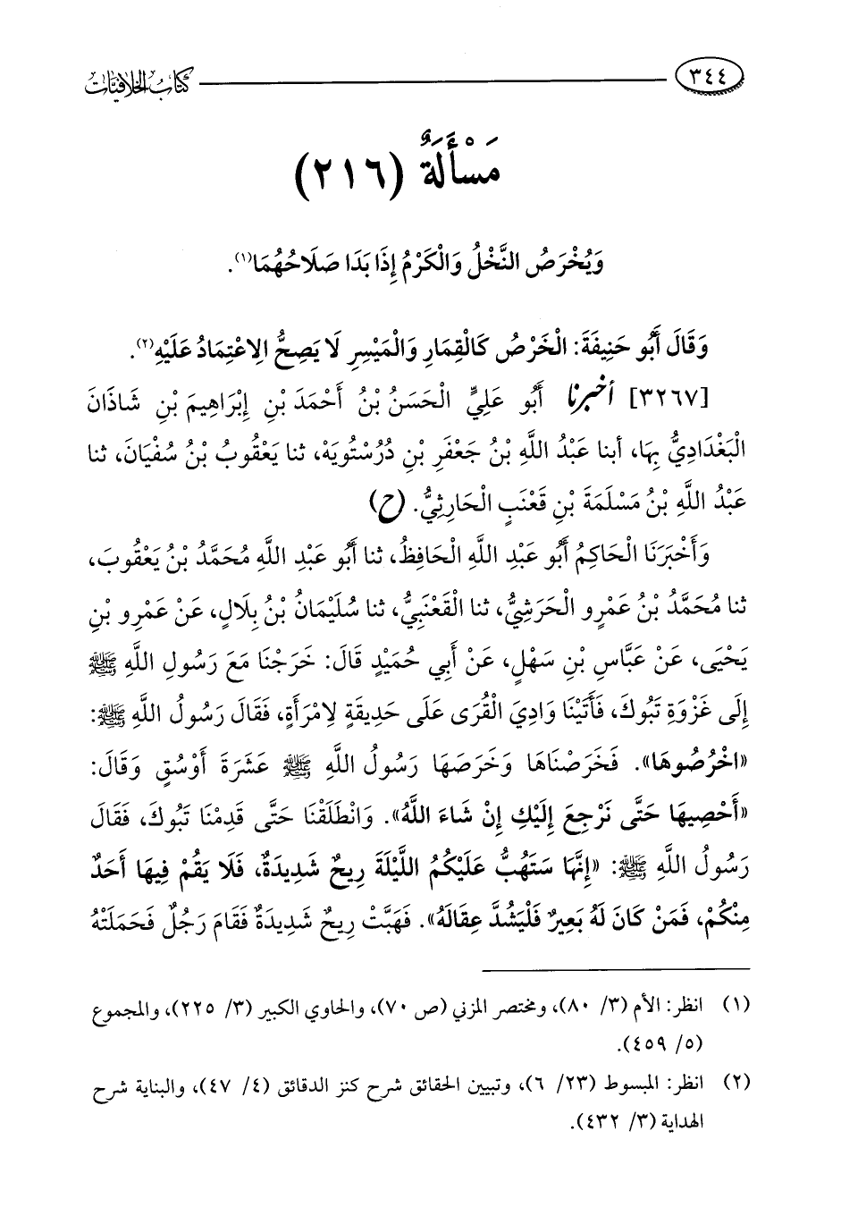 (¬2) انظر: المبسوط (23/ 6)، وتبيين الحقائق شرح كنز الدقائق (4/ 47)، والبناية شرح الهداية (3/ 432).