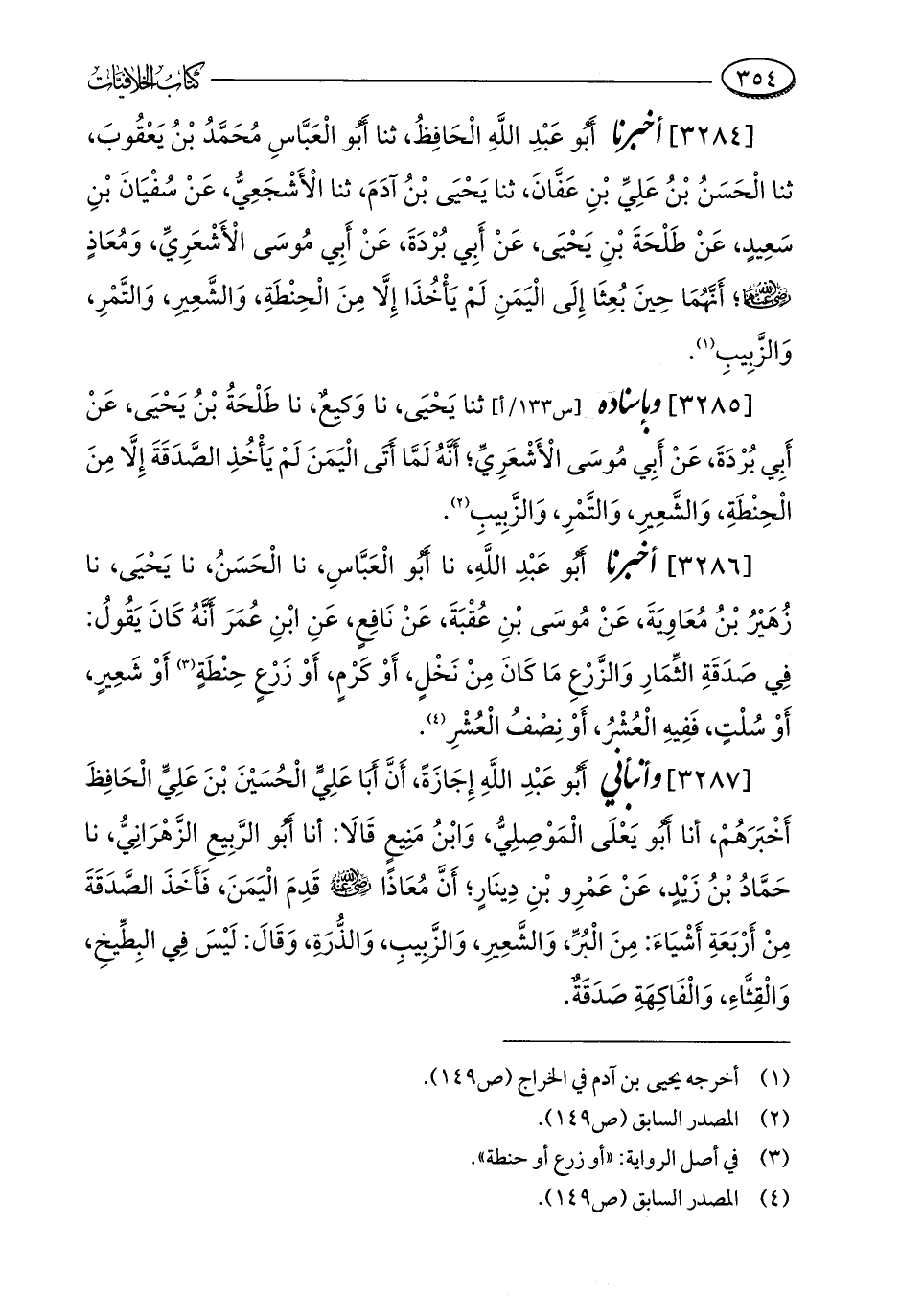 [3285] وبإسناده ثنا يَحْيَى، نا وَكيعٌ، نا طَلْحَةُ بْنُ يَحْيَى، عَنْ أَبِي بُرْدَةَ، عَنْ أَبِي مُوسَى الْأَشْعَرِيِّ؛ أَنَّهُ لَمَّا أَتَى الْيَمَنَ لَمْ يَأْخُذِ الصَّدَقَةَ إِلَّا مِنَ الْحِنْطَةِ، وَالشَّعِيرِ، وَالتَّمْرِ، وَالزَّبِيبِ (¬2).
