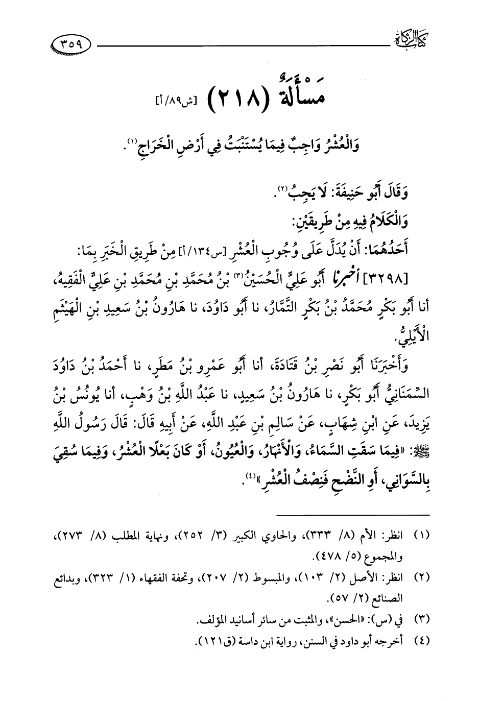 مَسْأَلَةٌ (218): وَالْعُشْرُ وَاجِبٌ فِيمَا يُسْتَنْبَتُ فِي أَرْضِ الْخَرَاجِ (¬1).