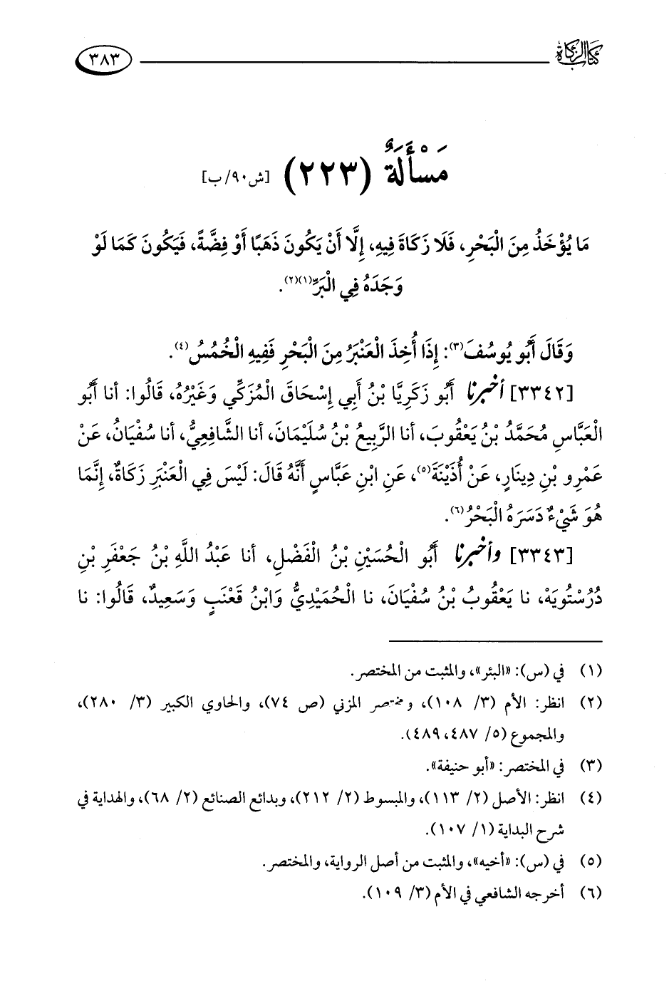 [3342] أخبرنا أَبُو زَكَرِيَّا بْنُ أَبِي إِسْحَاقَ الْمُزَكِّي وَغَيْرُهُ، قَالُوا: أنا أَبُو الْعَبَّاسِ مُحَمَّدُ بْنُ يَعْقُوبَ، أنا الرَّبِيعُ بْنُ سُلَيْمَانَ، أنا الشَّافِعِيُّ، أنا سُفْيَانُ، عَنْ عَمْرِو بْنِ دِينَارٍ، عَنْ أُذَيْنَةَ (¬5)، عَنِ ابْنِ عَبَّاسٍ أنَّهُ قَالَ: لَيْسَ فِي الْعَنْبَرِ زَكَاةٌ، إِنَّمَا هُوَ شَيْءٌ دَسَرَهُ الْبَحْرُ (¬6).