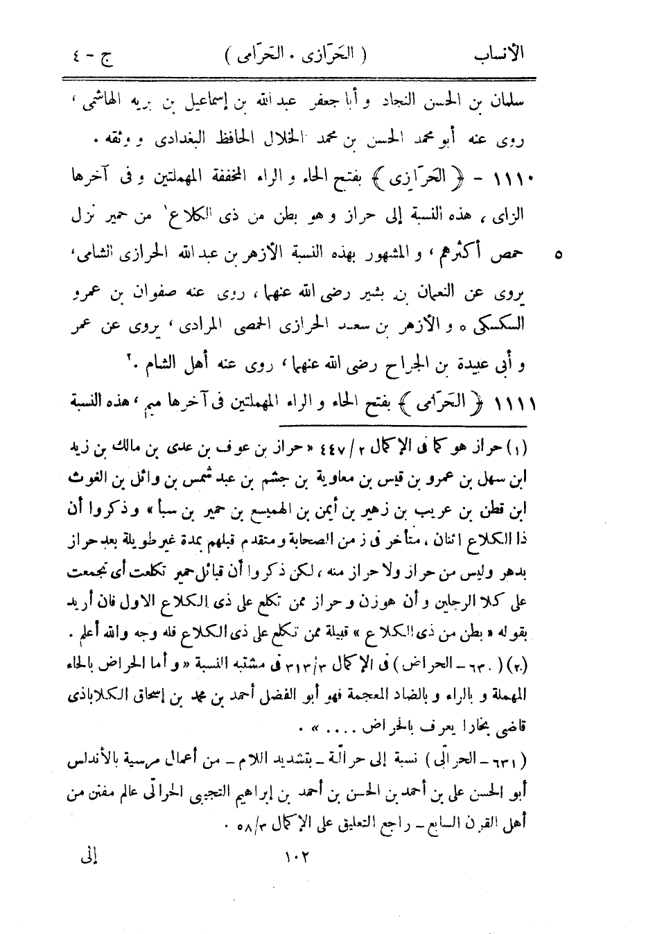 [1] حراز هو كما في الإكمال 2/ 447 «حراز بن عوف بن عدي بن مالك بن زيد ابن سهل بن عمرو بن قيس بن معاوية بن جشم بن عبد شمس بن وائل بن الغوث ابن قطن بن عريب بن زهير بن أيمن بن الهميسع بن حمير بن سبإ» وذكروا أن ذا الكلاع اثنان، متأخر في زمن الصحابة ومتقدم قبلهم بمدة غير طويلة بعد حراز بدهر وليس من حراز ولا حراز منه، لكن ذكروا أن قبائل حمير تكلعت أي تجمعت على كلا الرجلين وأن هوزن وحراز ممن تكلع على ذي الكلاع الأول فان أريد بقوله «بطن من ذي الكلاع» قبيلة ممن تكلع على ذي الكلاع فله وجه والله أعلم.
