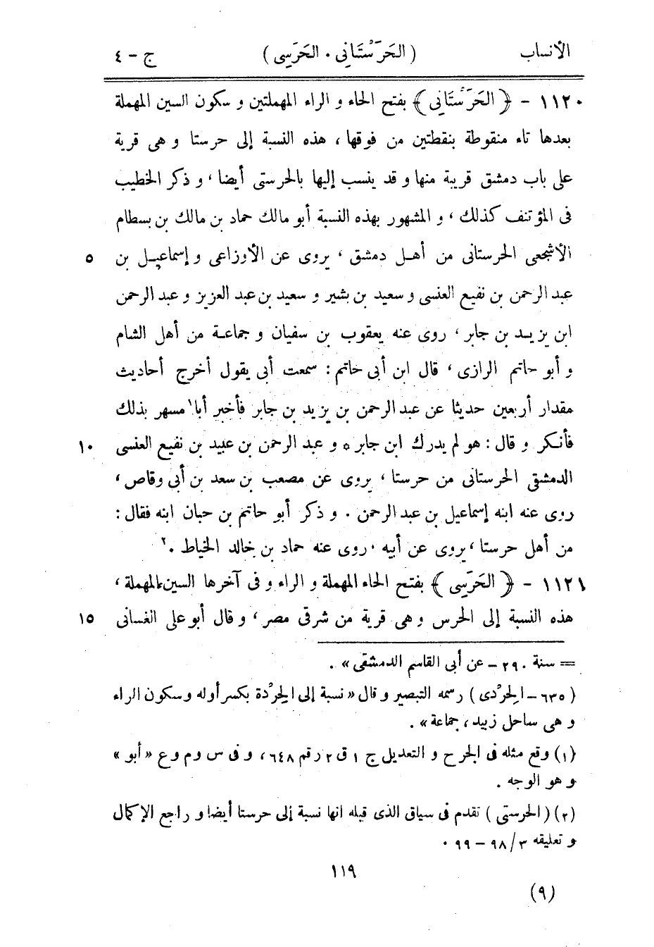 [2] (الحرستى) تقدم في سياق الّذي قبله انها نسبة إلى حرستا أيضا وراجع الإكمال وتعليقه 3/ 98- 99.