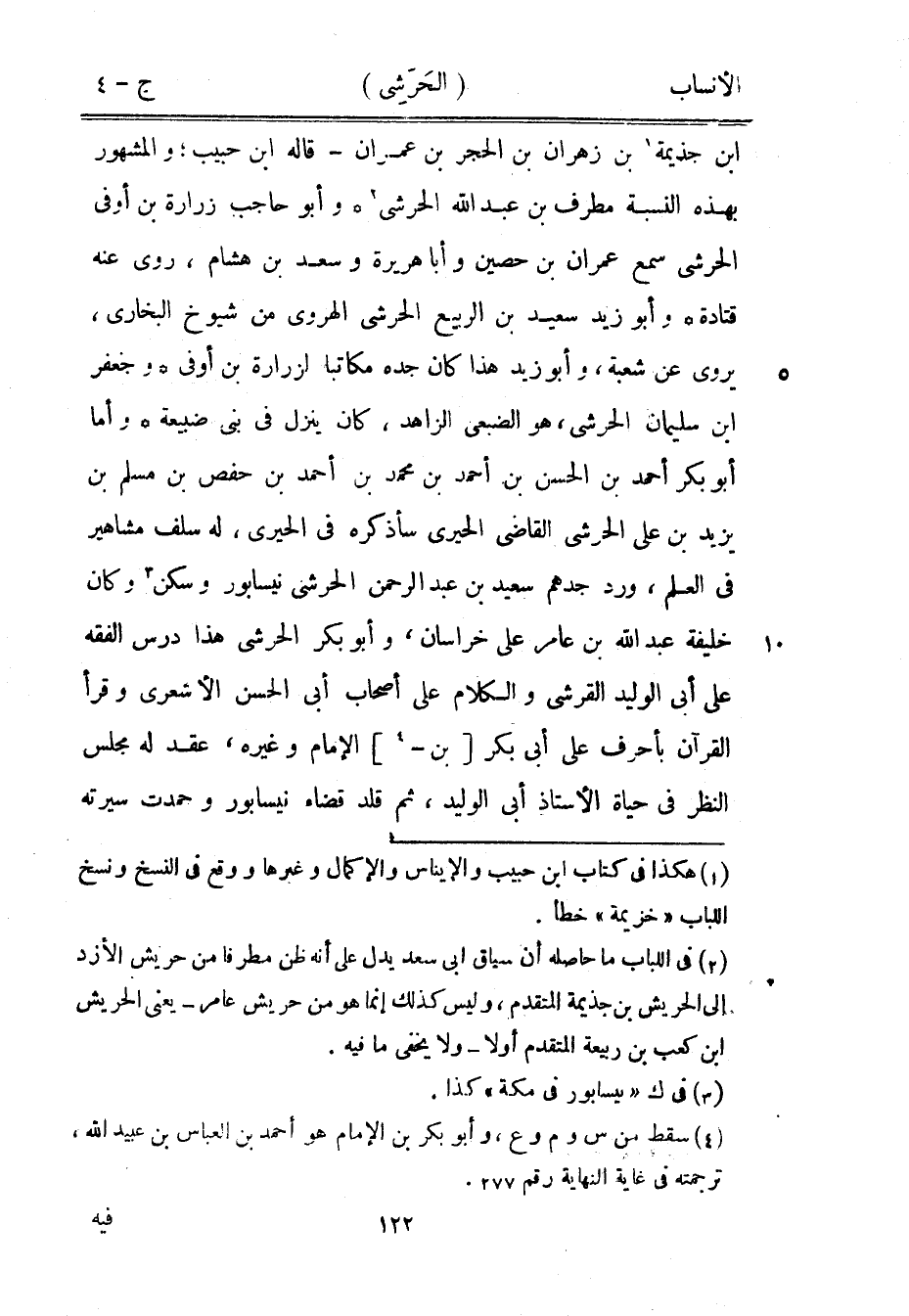 [2] في اللباب ما حاصله أن سياق ابى سعد يدل على أنه ظن مطرفا من حريش الأزد إلى الحريش بن جذيمة المتقدم، وليس كذلك إنما هو من حريش عامر- يعنى الحريش ابن كعب بن ربيعة المتقدم أولا- ولا يخفى ما فيه.