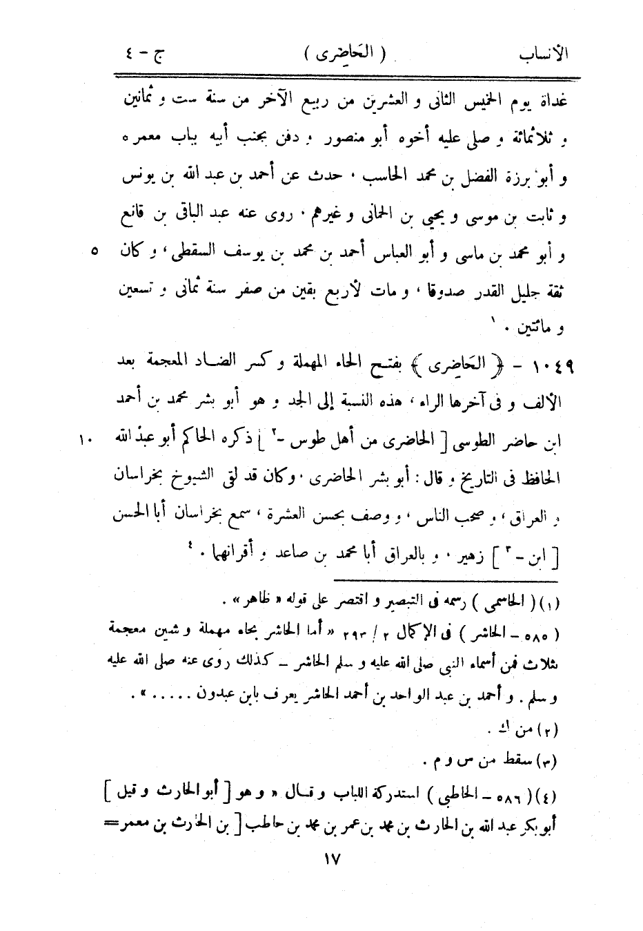 [4] (586- الحاطبى) استدركه اللباب وقال «وهو [أبو الحارث وقيل] أبو بكر عبد الله بن الحارث بن محمد بن عمر بن محمد بن حاطب [بن الحارث بن معمر