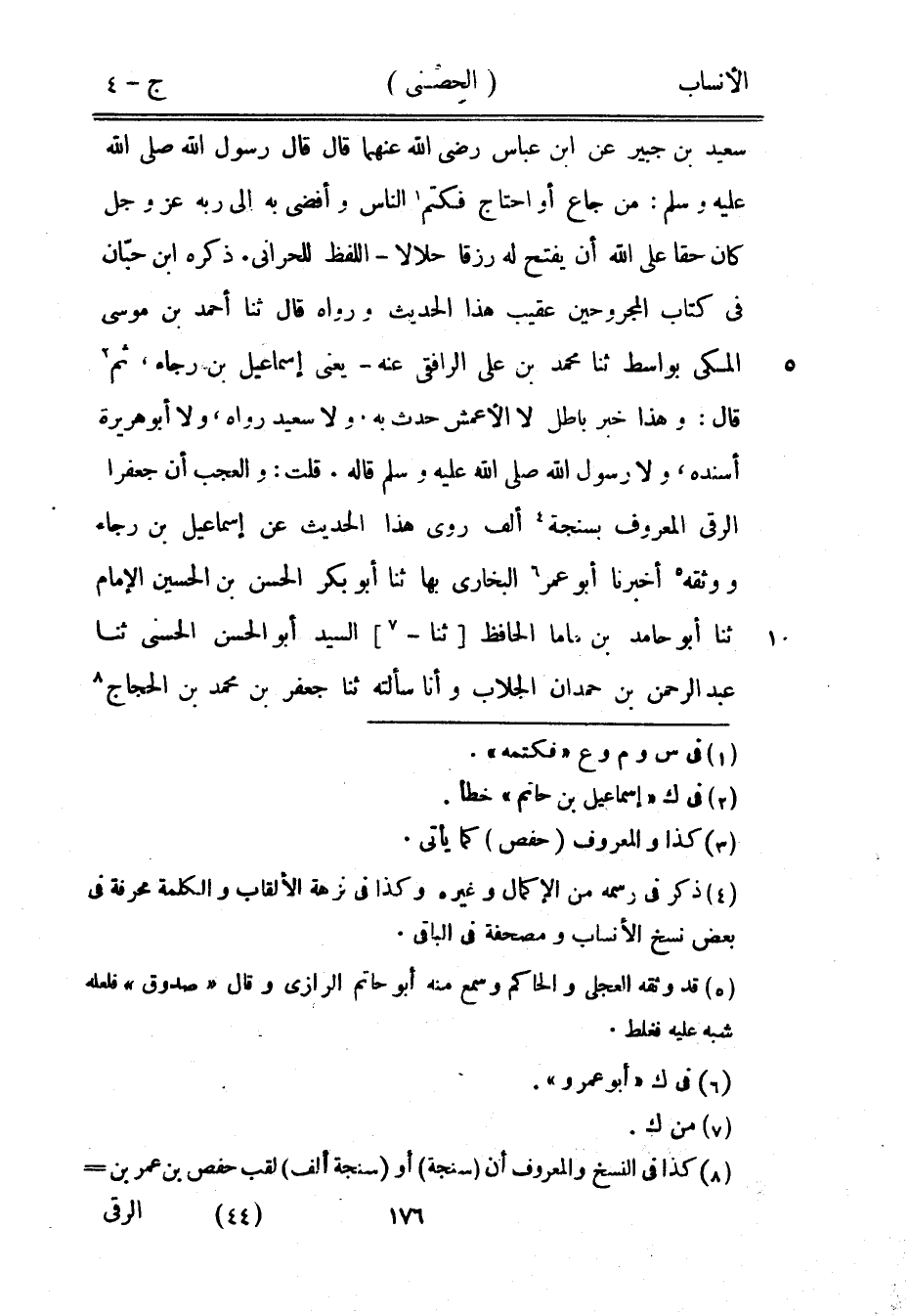 [4] ذكر في رسمه من الإكمال وغيره وكذا في نزهة الألقاب والكلمة محرفة في بعض نسخ الأنساب ومصحفة في الباقي.