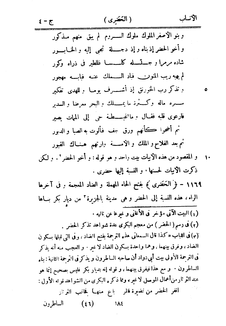 [2] في رسم (الحضر) من معجم البكري عدة شواهد تذكر الحضر.