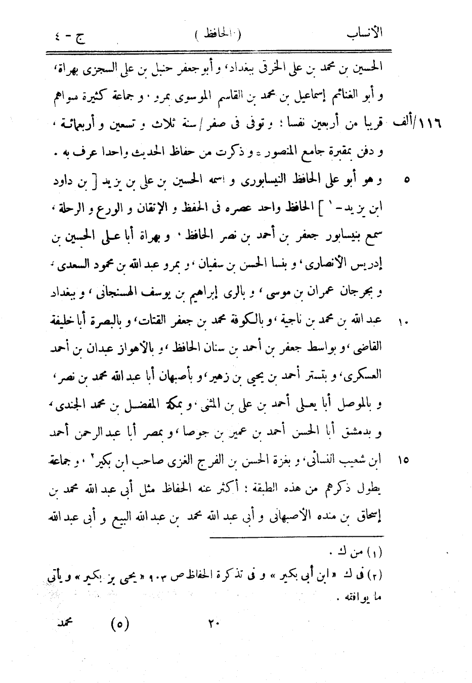 الحسين بن محمد بن على الخرقى ببغداد، وأبو جعفر حنبل بن على السجزى بهراة، وأبو الغنائم إسماعيل بن محمد بن القاسم الموسوي بمرو، وجماعة كثيرة سواهم 116/ ألف قريبا من أربعين نفسا، وتوفى في صفر/ سنة ثلاث وتسعين وأربعمائة، ودفن بمقبرة جامع المنصور وذكرت من حفاظ الحديث واحدا عرف به.