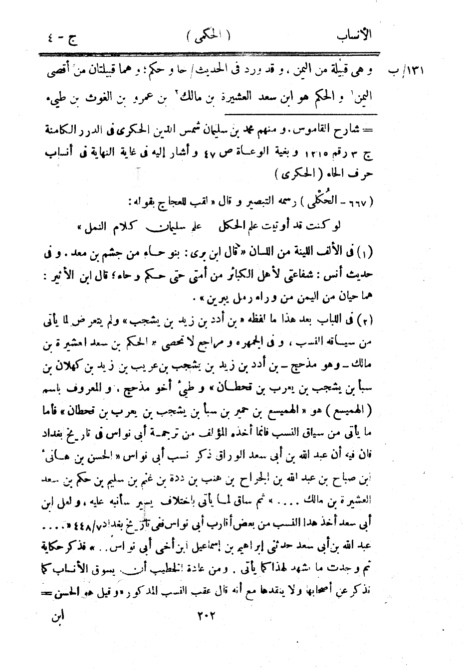 [ () ] شارح القاموس. ومنهم محمد بن سليمان شمس الدين الحكرى في الدرر الكامنة ج 3 رقم 1215 وبغية الوعاة ص 47 وأشار إليه في غاية النهاية في أنساب حرف الحاء (الحكرى) (667- الحكلى) رسمه التبصير وقال «لقب للعجاج بقوله:
