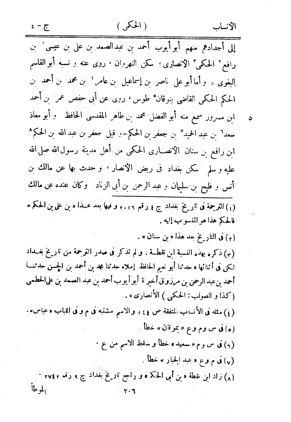 [1] الترجمة في تاريخ بغداد ج 4 رقم 2016 وفيها بعد هذا «بن على بن الحكم» فالحكم هذا هو المنسوب إليه.