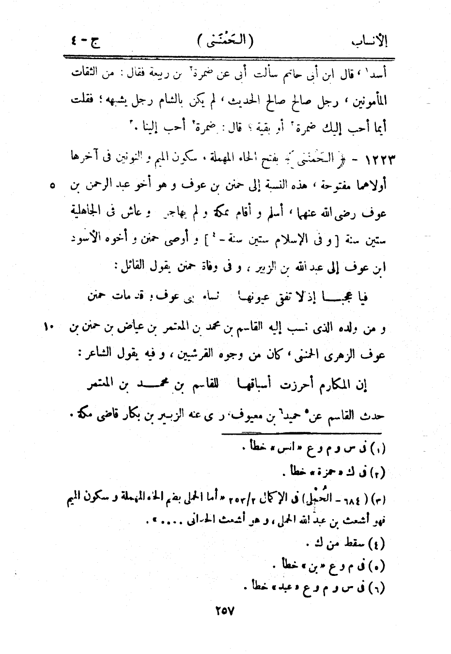 بفتح الحاء المهملة وسكون الميم والنونين في آخرها أولاهما مفتوحة، هذه النسبة إلى حمنن بن عوف وهو أخو عبد الرحمن بن عوف رضى الله عنهما، أسلم وأقام بمكة ولم يهاجر وعاش في الجاهلية ستين سنة [وفي الإسلام ستين سنة-[4]] وأوصى حمنن وأخوه الأسود ابن عوف إلى عبد الله بن الزبير، وفي وفاة حمنن يقول القائل: