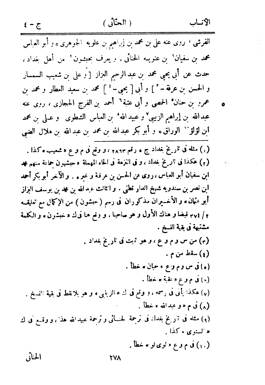 [2] هكذا في تاريخ بغداد، وفي النزهة في الحاء المهملة «حبشيون جماعة منهم محمد ابن سفيان أبو العباس، روى عن الحسن بن عرفة وغيره. والآخر أبو بكر أحمد ابن نصر بن سندويه شيخ الدارقطنيّ. والثالث عبد الله بن محمد بن يوسف البزاز أبو عثمان» والأخيران مذكوران في رسم (حبشون) من الإكمال مع تعليقه 2/ 374 قبضا وهناك الأول وهو صاحبنا، ووقع هنا في ك «خبشون» والكلمة مشتبهة في بقية النسخ.