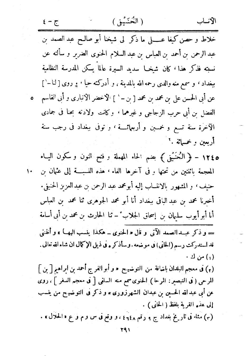 [2] في معجم البلدان بإضافة من التوضيح «وأبو الفرج أحمد بن إبراهيم [بن] المرحى (في التبصير: المرحا) الحنوى سمع منه السلفي [في معجم السفر] ، روى عن أبى عبد الله الحسين بن عبدان الشهرزوريّ» وذكر في التوضيح من ينسب إلى هذه القرية بلفظ (الحانى) .