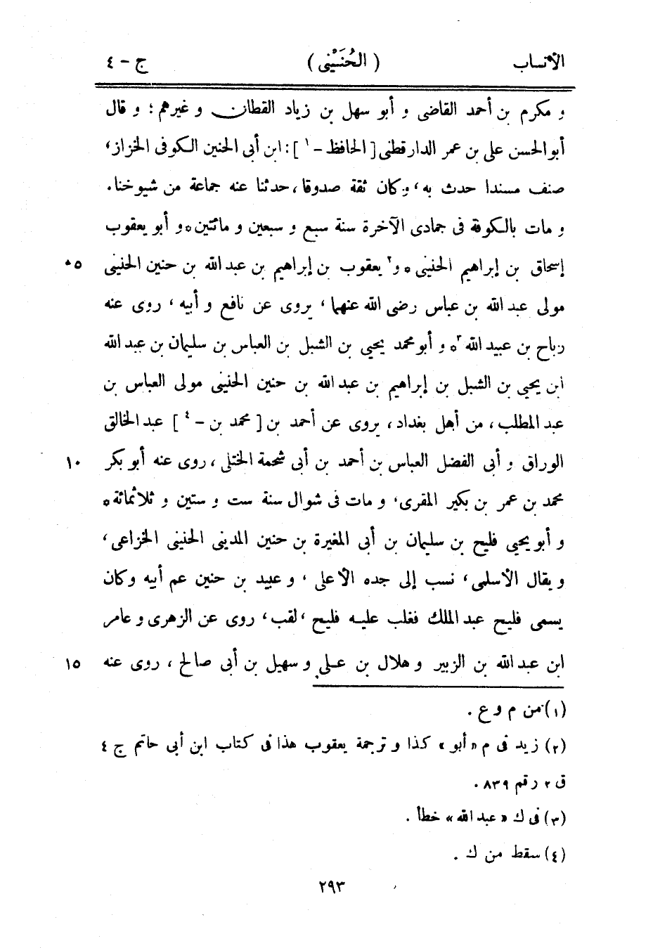 ومات بالكوفة في جمادى الآخرة سنة سبع وسبعين ومائتين وأبو يعقوب إسحاق بن إبراهيم الحنينى و [2] يعقوب بن إبراهيم بن عبد الله بن حنين الحنينى مولى عبد الله بن عباس رضى الله عنهما، يروى عن نافع وأبيه، روى عنه رباح بن عبيد الله [3] وأبو محمد يحيى بن الشبل بن العباس بن سليمان بن عبد الله ابن يحيى بن الشبل بن إبراهيم بن عبد الله بن حنين الحنينى مولى العباس بن عبد المطلب، من أهل بغداد، يروى عن أحمد بن [محمد بن-[4]] عبد الخالق الوراق وأبى الفضل العباس بن أحمد بن أبى شحمة الختّليّ، روى عنه أبو بكر محمد بن عمر بن بكير المقري، ومات في شوال سنة ست وستين وثلاثمائة وأبو يحيى فليح بن سليمان بن أبى المغيرة بن حنين المديني الحنينى الخزاعي، ويقال الأسلمي، نسب إلى جده الأعلى، وعبيد بن حنين عم أبيه وكان يسمى فليح عبد الملك فغلب عليه فليح، لقب، روى عن الزهري وعامر ابن عبد الله بن الزبير وهلال بن على وسهيل بن أبى صالح، روى عنه