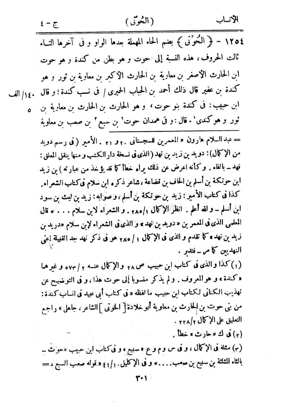 كذا في كتاب الأمير: زيد بن حوتكة بن أسلم، وصوابه: زيد بن ليث بن سود ابن أسلم- والله أعلم. انظر الإكمال 1/ 285. والشعراء لابن سلام ... » قال المعلمي الّذي في المعمرين «دويد بن نهد» والّذي في الشعراء لابن سلام «دريد بن زيد بن نهد» كما تقدم والّذي في الإكمال 1/ 285 هو في ذكر نهد جد القبيلة اعنى النهديين كما مر- فتدبر.