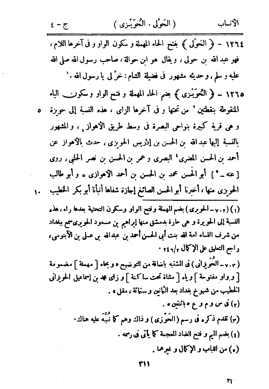 [1] (702- الحويرى) بضم المهملة وفتح الواو وسكون التحتية بعدها راء، هذه النسبة إلى الحويرة وهي حارة بدمشق منها إبراهيم بن مسعود الحويرى سمع ببغداد من شرف النساء امة الله بنت أبى الحسن أحمد بن عبد الله بن على بن الآبنوسي، راجع التعليق على الإكمال 2/ 246.