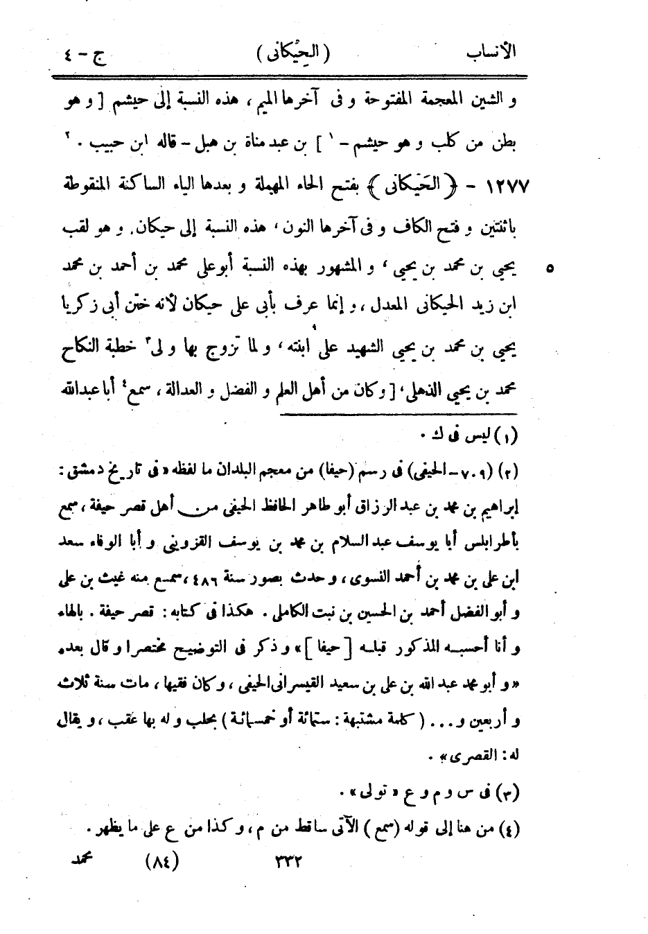 [2] (709- الحيفى) في رسم (حيفا) من معجم البلدان ما لفظه «في تاريخ دمشق: