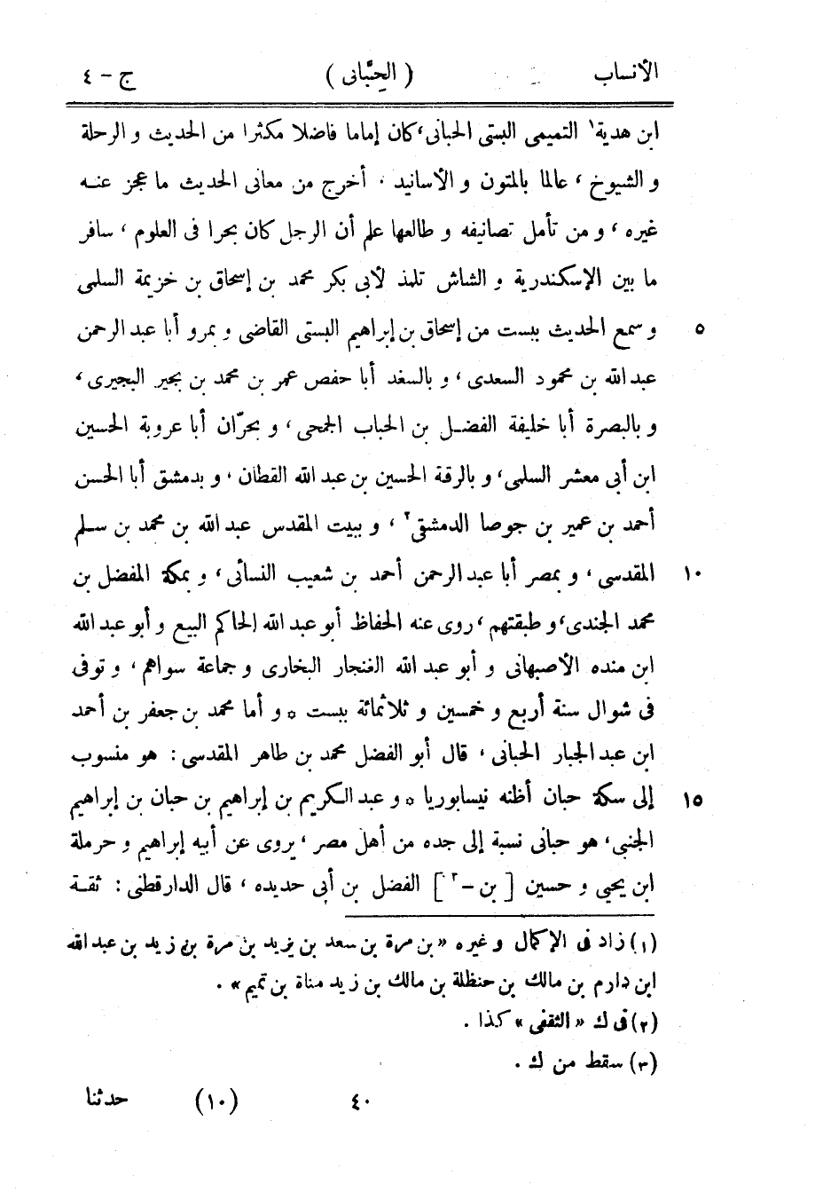 ابن هدية [1] التميمي البستي الحبانى، كان إماما فاضلا مكثرا من الحديث والرحلة والشيوخ، عالما بالمتون والأسانيد. أخرج من معاني الحديث ما عجز عنه غيره، ومن تأمل تصانيفه وطالعها علم أن الرجل كان بحرا في العلوم، سافر ما بين الإسكندرية والشاش تلمذ لأبى بكر محمد بن إسحاق بن خزيمة السلمي وسمع الحديث ببست من إسحاق بن إبراهيم البستي القاضي وبمرو أبا عبد الرحمن عبد الله بن محمود السعدي، وبالسغد أبا حفص عمر بن محمد بن بجير البجيري، وبالبصرة أبا خليفة الفضل بن الحباب الجمحيّ، وبحرّان أبا عروبة الحسين ابن أبى معشر السلمي، وبالرقة الحسين بن عبد الله القطان، وبدمشق أبا الحسن أحمد بن عمير بن جوصا الدمشقيّ [2] ، وببيت المقدس عبد الله بن محمد بن سلم المقدسي، وبمصر أبا عبد الرحمن أحمد بن شعيب النسائي، وبمكة المفضل بن محمد الجندي، وطبقتهم، روى عنه الحفاظ أبو عبد الله الحاكم البيع وأبو عبد الله ابن مندة الأصبهاني وأبو عبد الله الغنجار البخاري وجماعة سواهم، وتوفى في شوال سنة أربع وخمسين وثلاثمائة ببست وأما محمد بن جعفر بن أحمد ابن عبد الجبار الحبانى، قال أبو الفضل محمد بن طاهر المقدسي: هو منسوب إلى سكة حبان أظنه نيسابوريا وعبد الكريم بن إبراهيم بن حبان بن إبراهيم الجنبي، هو حباني نسبة إلى جده من أهل مصر، يروى عن أبيه إبراهيم وحرملة ابن يحيى وحسين [بن-[3]] الفضل بن أبى حديدة، قال الدار قطنى: ثقة