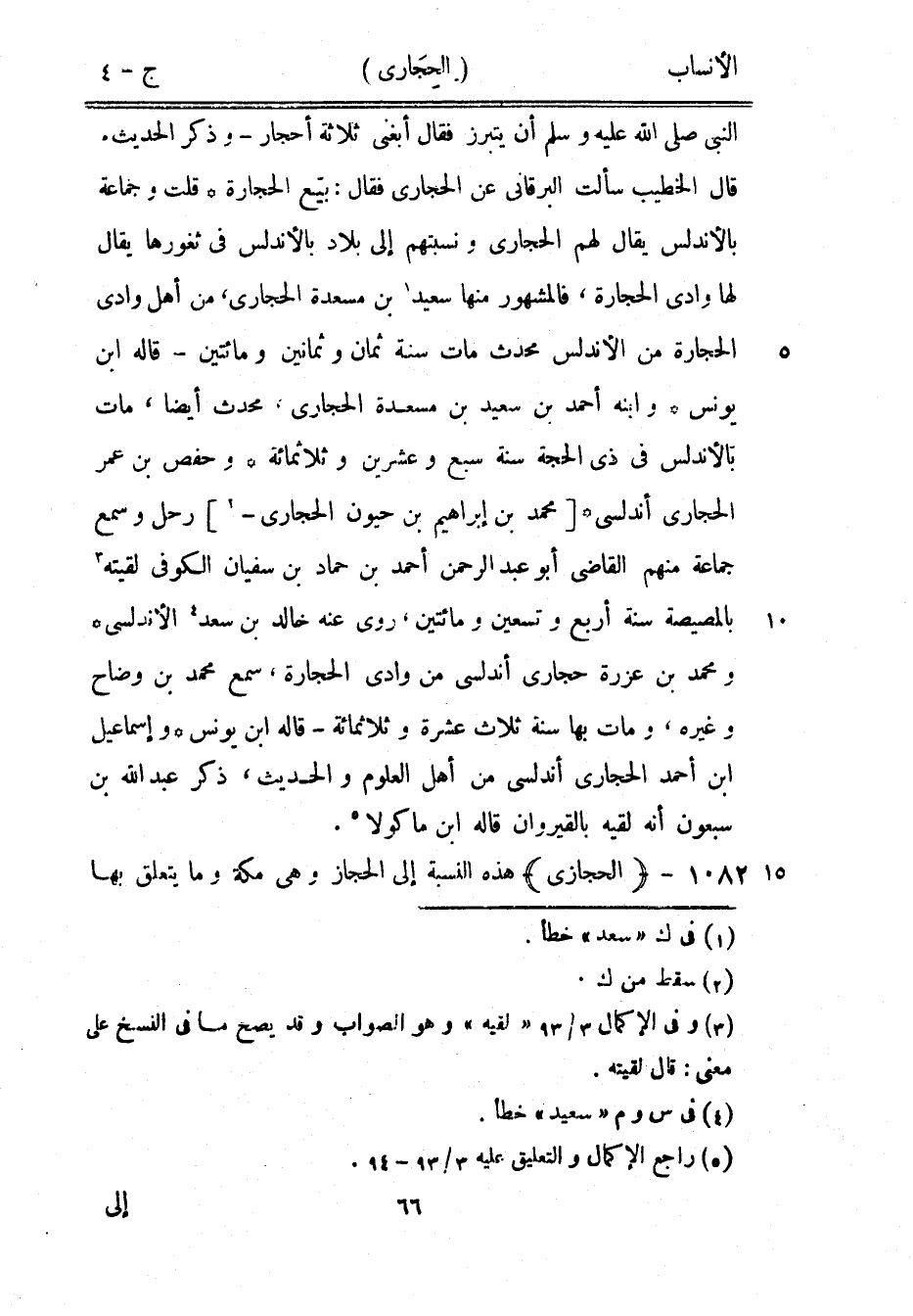 النبي صلى الله عليه وسلم أن يتبرز فقال أبغنى ثلاثة أحجار- وذكر الحديث، قال الخطيب سألت البرقاني عن الحجارى فقال: بيّع الحجارة قلت وجماعة بالأندلس يقال لهم الحجارى ونسبتهم إلى بلاد بالأندلس في ثغورها يقال لها وادي الحجارة، فالمشهور منها سعيد [1] بن مسعدة الحجارى، من أهل وادي الحجارة من الأندلس محدث مات سنة ثمان وثمانين ومائتين- قاله ابن يونس وابنه أحمد بن سعيد بن مسعدة الحجارى، محدث أيضا، مات بالأندلس في ذي الحجة سنة سبع وعشرين وثلاثمائة وحفص بن عمر الحجارى أندلسى [محمد بن إبراهيم بن حيون الحجارى-[2]] رحل وسمع جماعة منهم القاضي أبو عبد الرحمن أحمد بن حماد بن سفيان الكوفي لقيته [3] بالمصيصة سنة أربع وتسعين ومائتين، روى عنه خالد بن سعد [4] الأندلسى ومحمد بن عزرة حجارى أندلسى من وادي الحجارة، سمع محمد بن وضاح وغيره، ومات بها سنة ثلاث عشرة وثلاثمائة- قاله ابن يونس وإسماعيل ابن أحمد الحجارى أندلسى من أهل العلوم والحديث، ذكر عبد الله بن سبعون أنه لقيه بالقيروان قاله ابن ماكولا. [5]