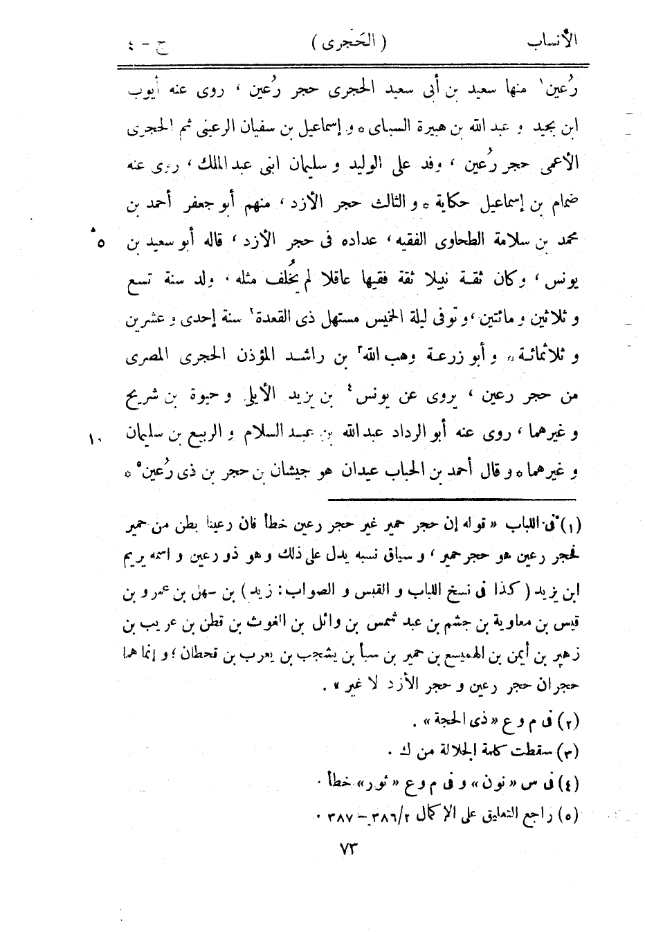 رعين [1] منها سعيد بن أبى سعيد الحجري حجر رعين، روى عنه أيوب ابن بجيد وعبد الله بن هبيرة السبئي وإسماعيل بن سفيان الرعينيّ ثم الحجري الأعمى حجر رعين، وفد على الوليد وسليمان ابني عبد الملك، روى عنه ضمام بن إسماعيل حكاية والثالث حجر الأزد، منهم أبو جعفر أحمد بن محمد بن سلامة الطحاوي الفقيه، عداده في حجر الأزد، قاله أبو سعيد بن يونس، وكان ثقة نبيلا ثقة فقيها عاقلا لم يخلف مثله، ولد سنة تسع وثلاثين ومائتين، وتوفى ليلة الخميس مستهل ذي القعدة [2] سنة إحدى وعشرين وثلاثمائة وأبو زرعة وهب الله [3] بن راشد المؤذن الحجري المصري من حجر رعين، يروى عن يونس [4] بن يزيد الأيلي وحيوة بن شريح وغيرهما، روى عنه أبو الرداد عبد الله بن عبد السلام والربيع بن سليمان وغيرهما وقال أحمد بن الحباب عيدان هو جيشان بن حجر بن ذي رعين [5]