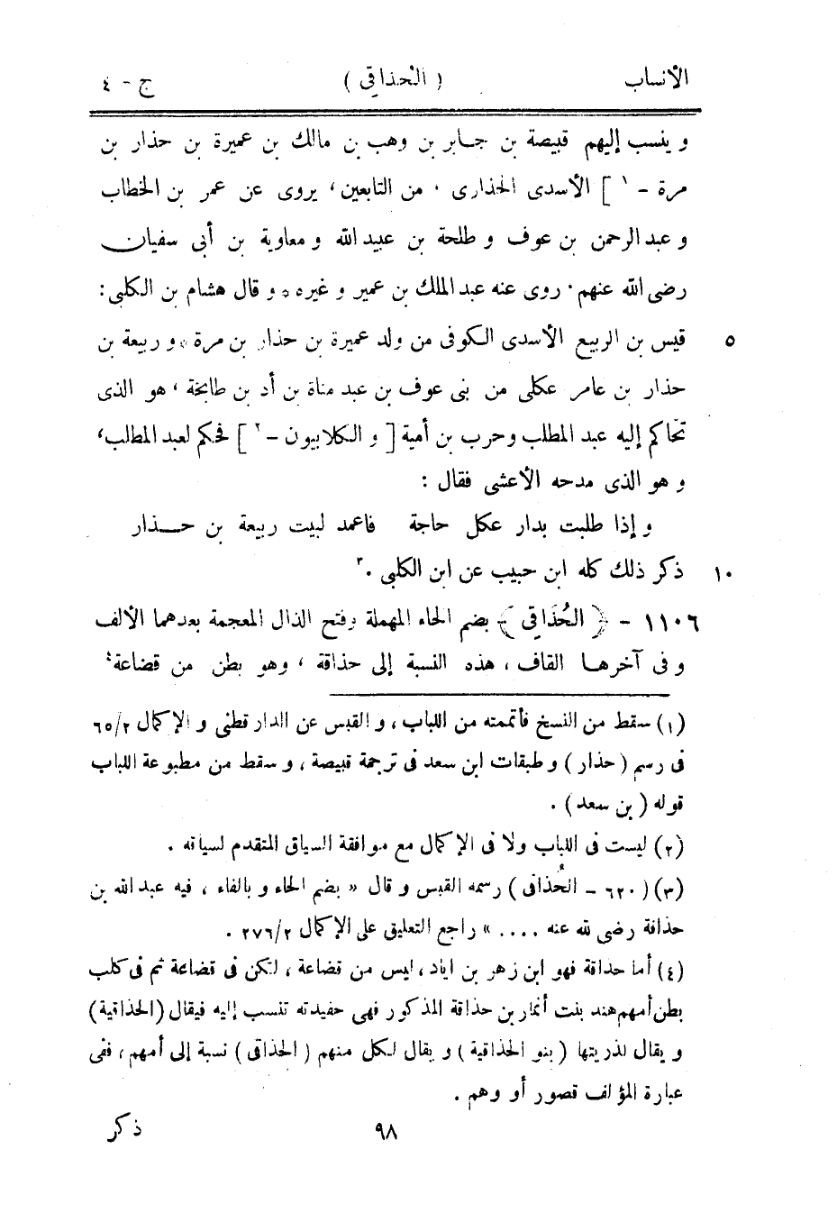 [1] سقط من النسخ فأتممته من اللباب، والقبس عن الدار قطنى والإكمال 2/ 65 في رسم (حذار) وطبقات ابن سعد في ترجمة قبيصة، وسقط من مطبوعة اللباب قوله (بن سعد) .